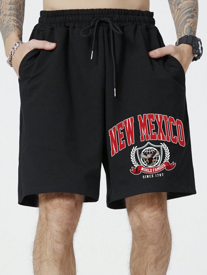 Street Life Guys Letter Graphic Drawstring Waist Shorts