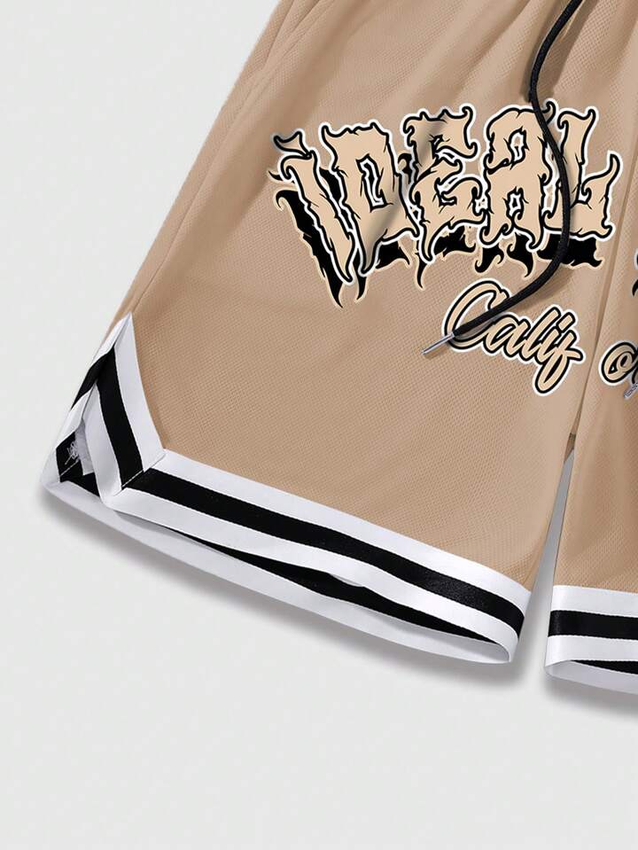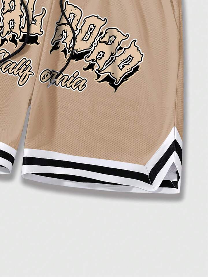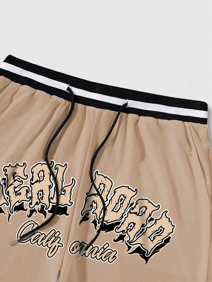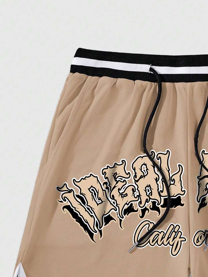 Street Life Guys Letter Graphic Striped Trim Drawstring Waist Shorts
