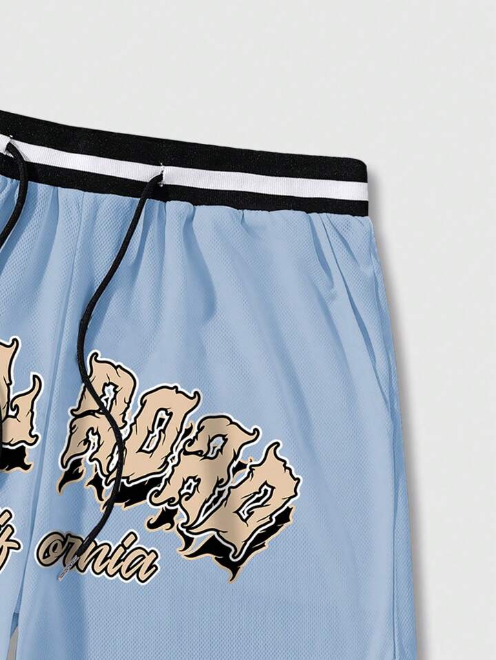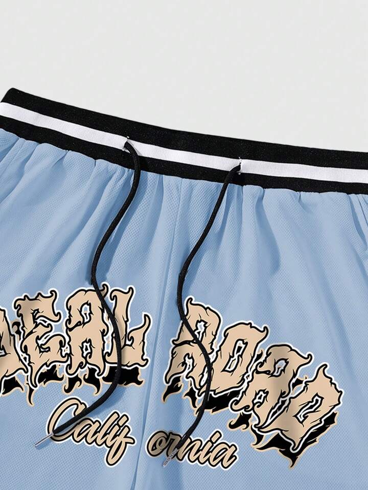 Street Life Guys Letter Graphic Striped Trim Drawstring Waist Shorts