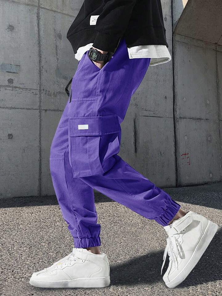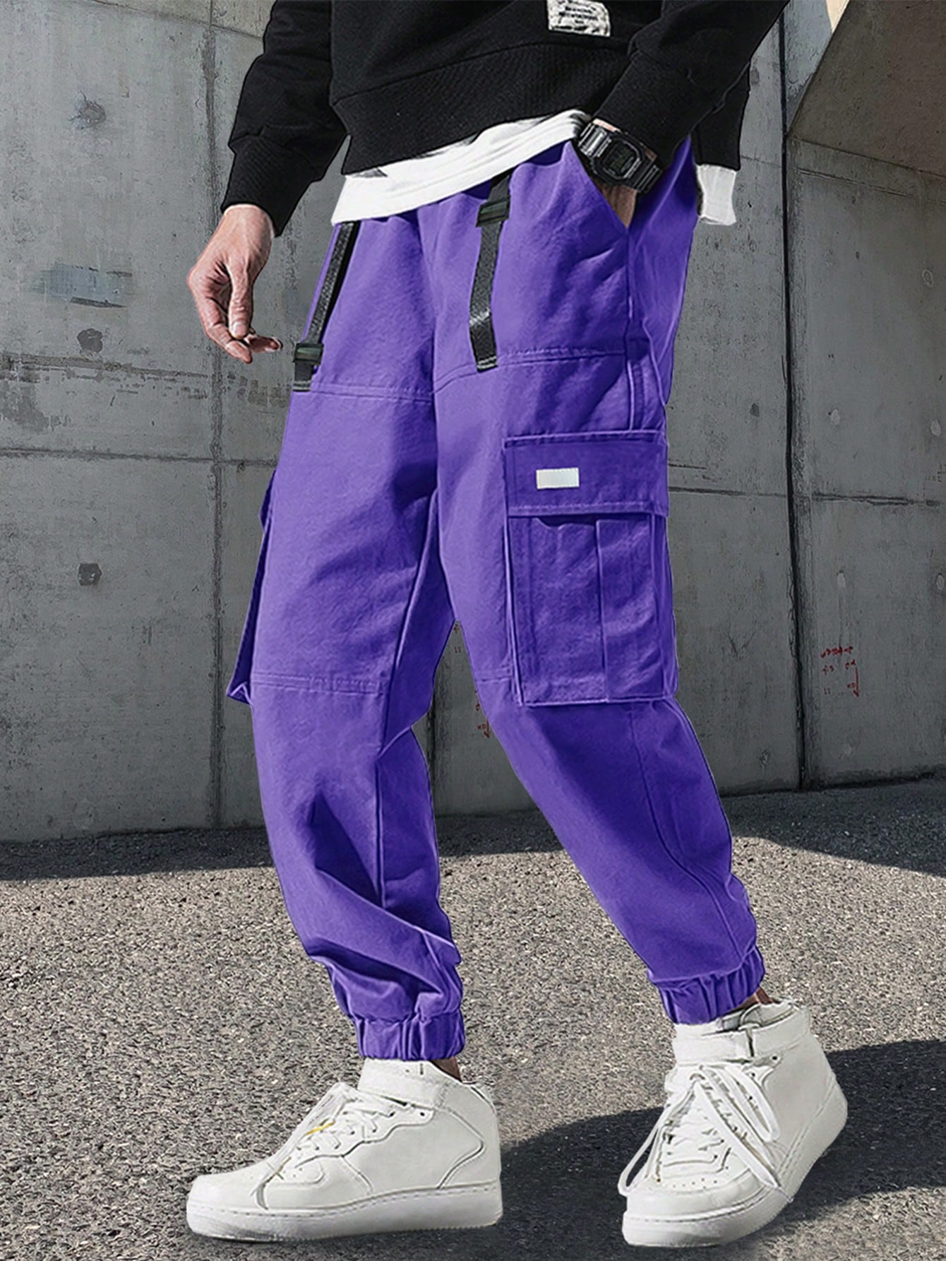 Street Life Guys Patched Detail Flap Pocket Buckle Detail Cargo Pants