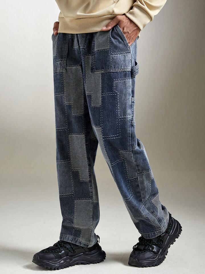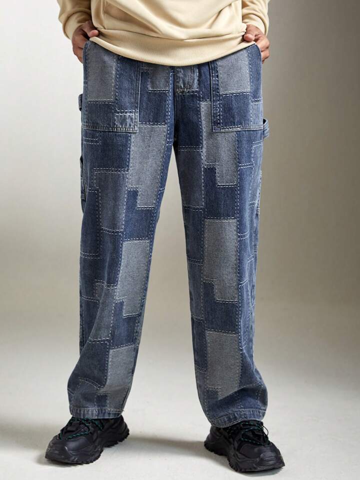 Street Life Guys Patchwork Print Straight Leg Jeans