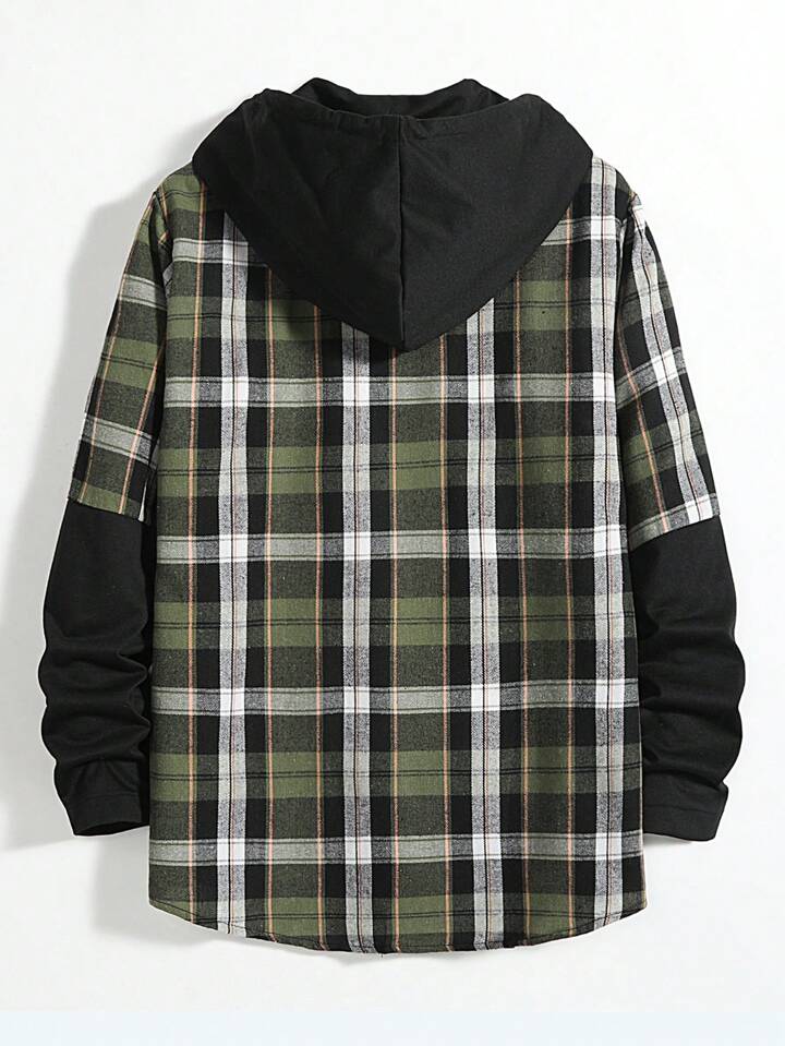 Street Life Guys Plaid Print Drawstring Hooded Shirt Without Tee