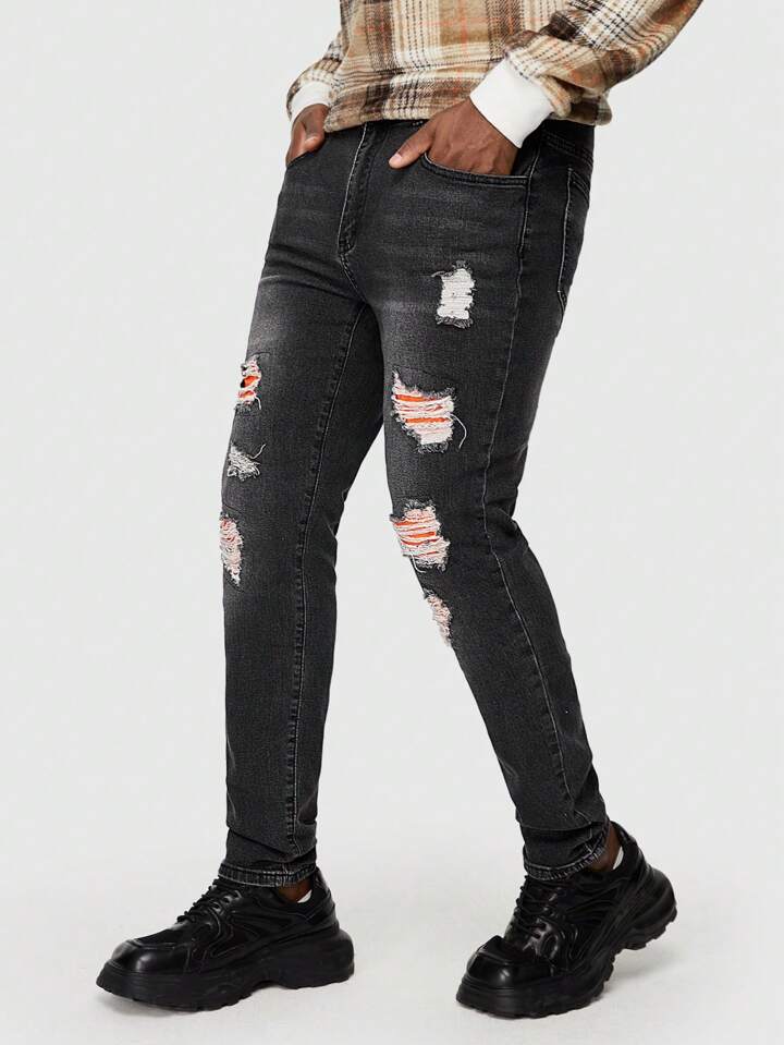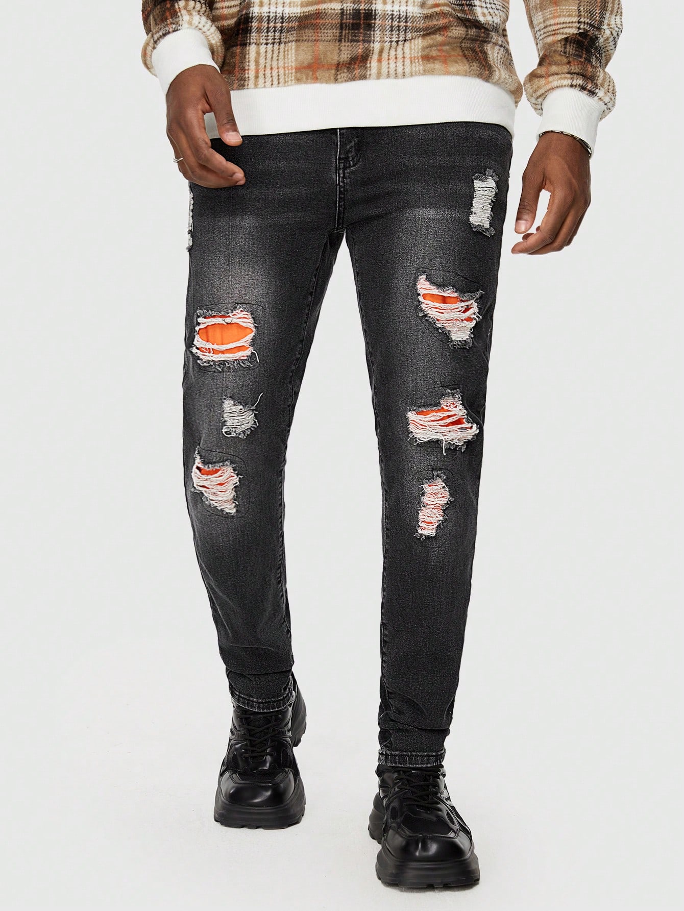 Street Life Guys Ripped Frayed Cat Scratch Straight Leg Jeans