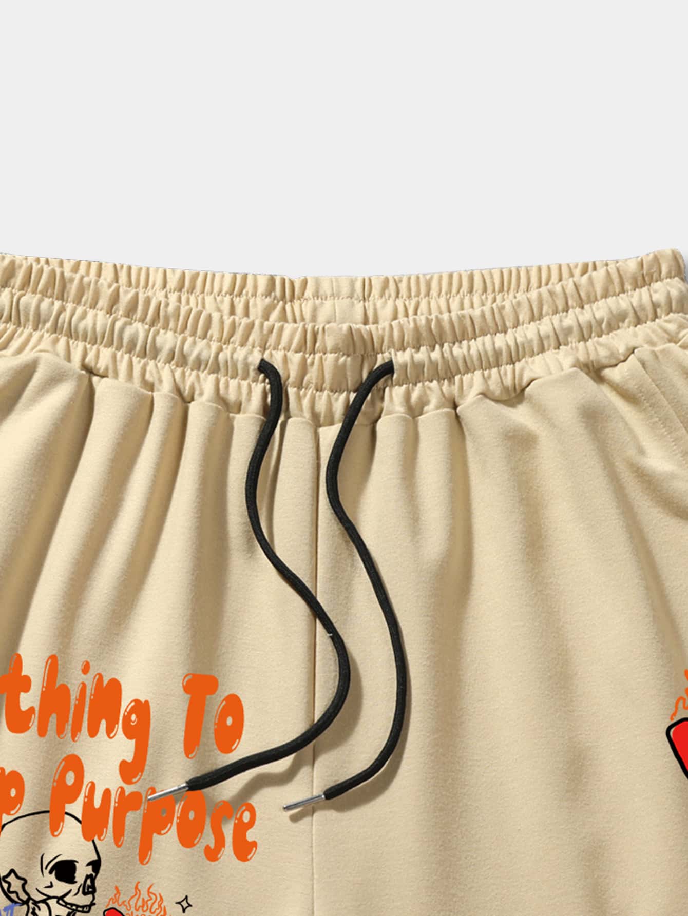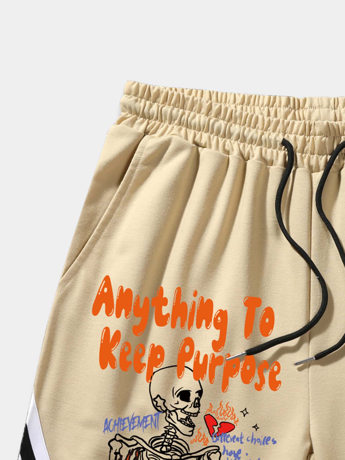 Street Life Guys Skeleton & Slogan Graphic Striped Trim Drawstring Waist Shorts