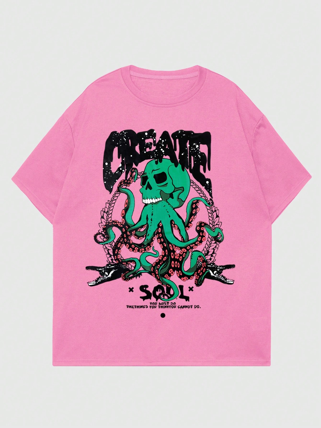 Street Life Guys Skull Graphic Drop Shoulder Tee