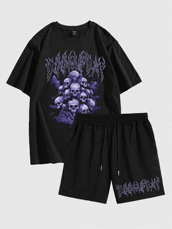 Street Life Guys Skull Letter Graphic Tee & Drawstring Waist Shorts