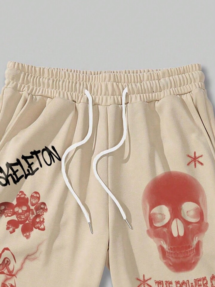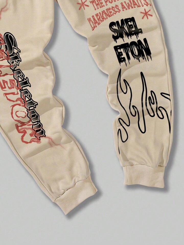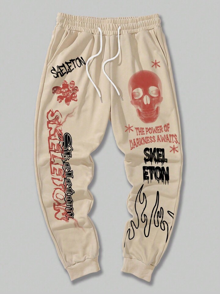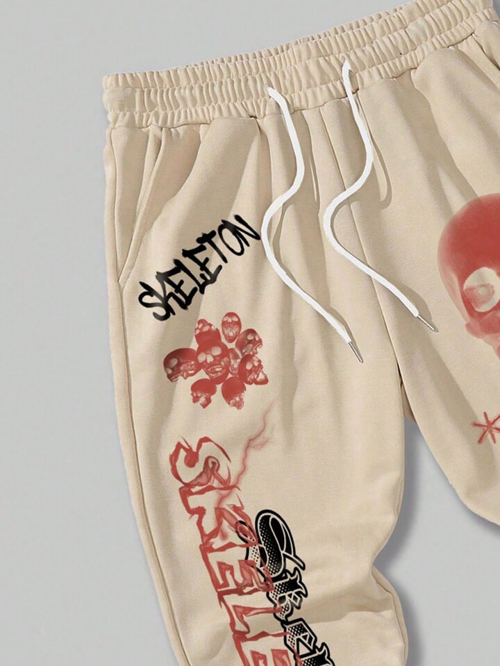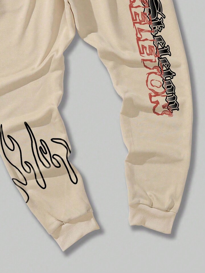 Street Life Guys Skull & Slogan Graphic Drawstring Waist Sweatpants