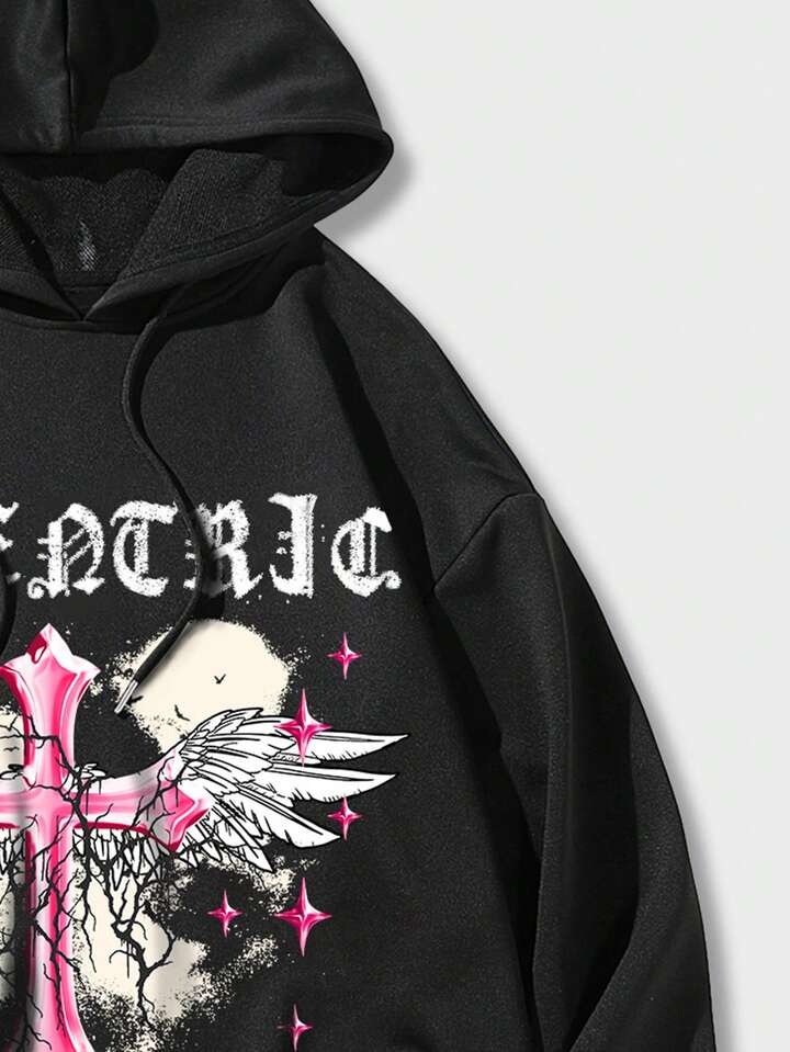 Street Life Guys Slogan & Cross Graphic Drawstring Hoodie