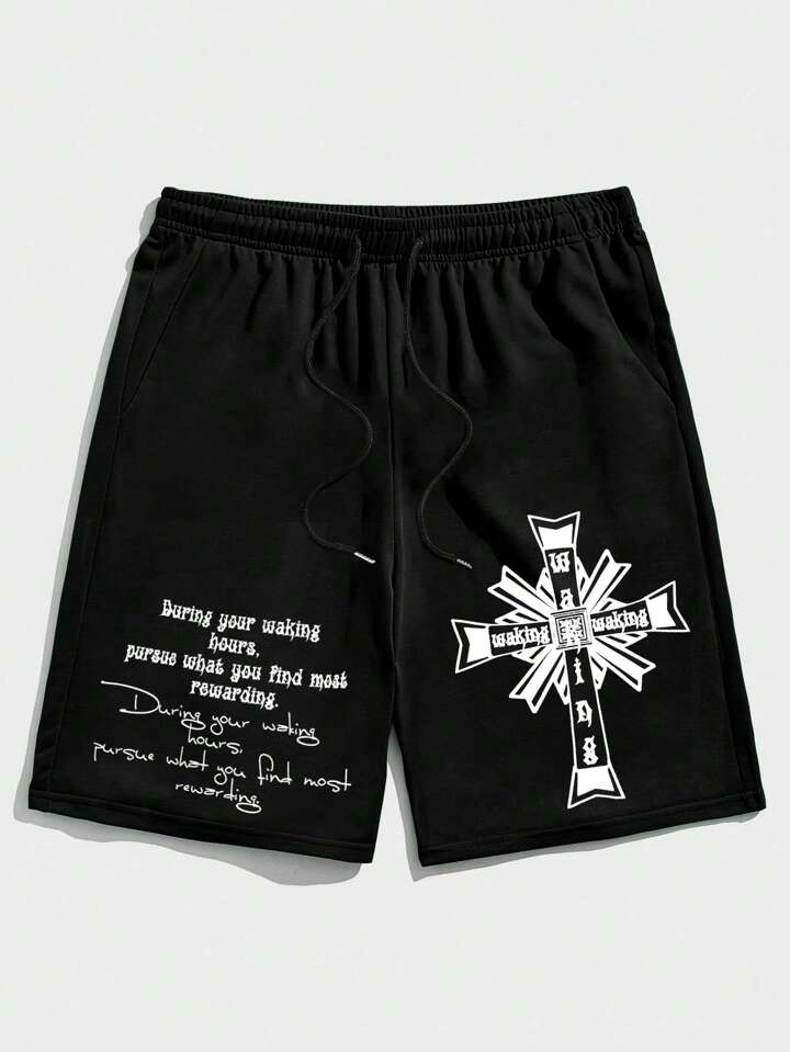 Street Life Guys Slogan Graphic Drawstring Waist Shorts