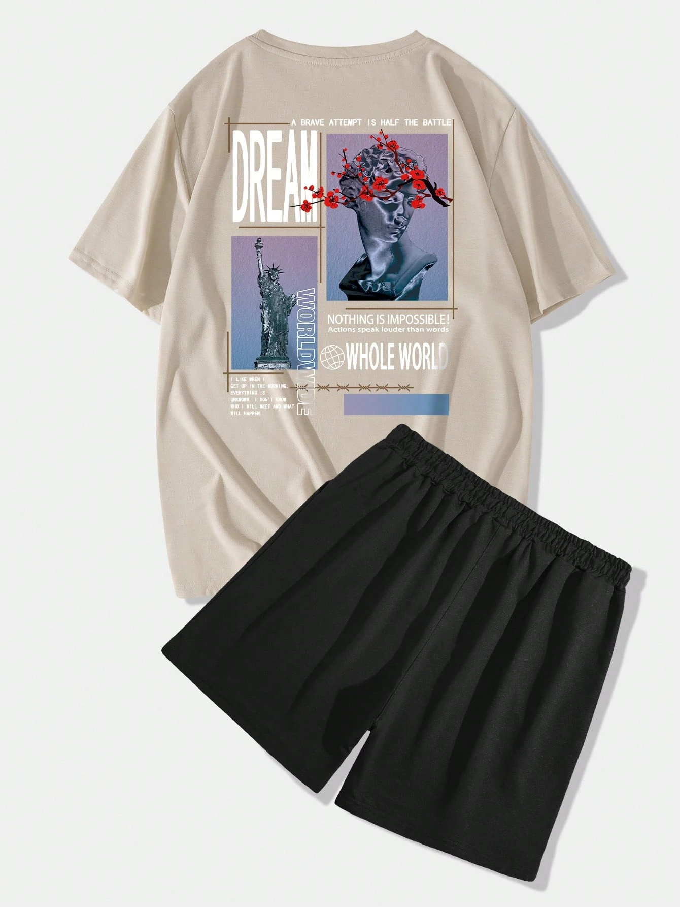 Street Life Guys Slogan Graphic Tee & Drawstring Waist Shorts