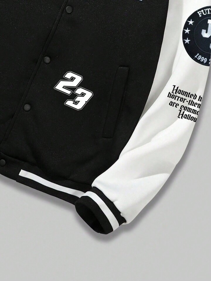Street Life Guys Slogan Graphic Two Tone Varsity Jacket