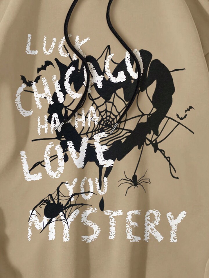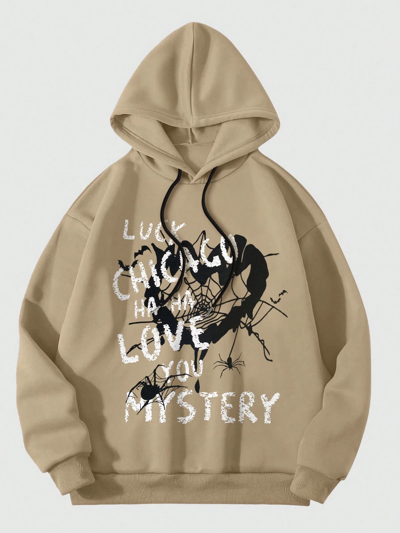 Street Life Guys Slogan Spider Graphic Drawstring Thermal Lined Hoodie