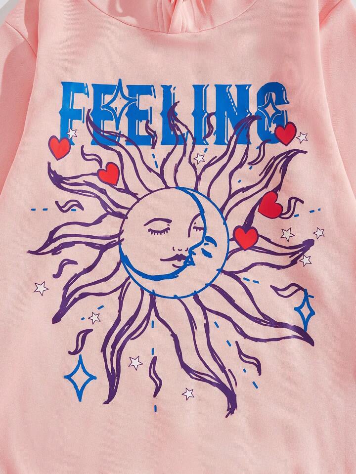 Street Life Guys Sun & Letter Graphic Drawstring Thermal Lined Hoodie