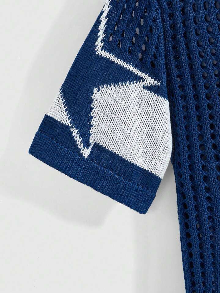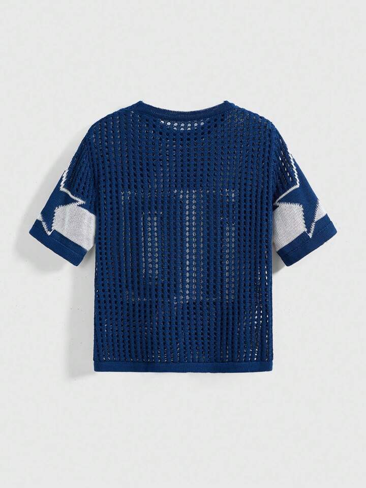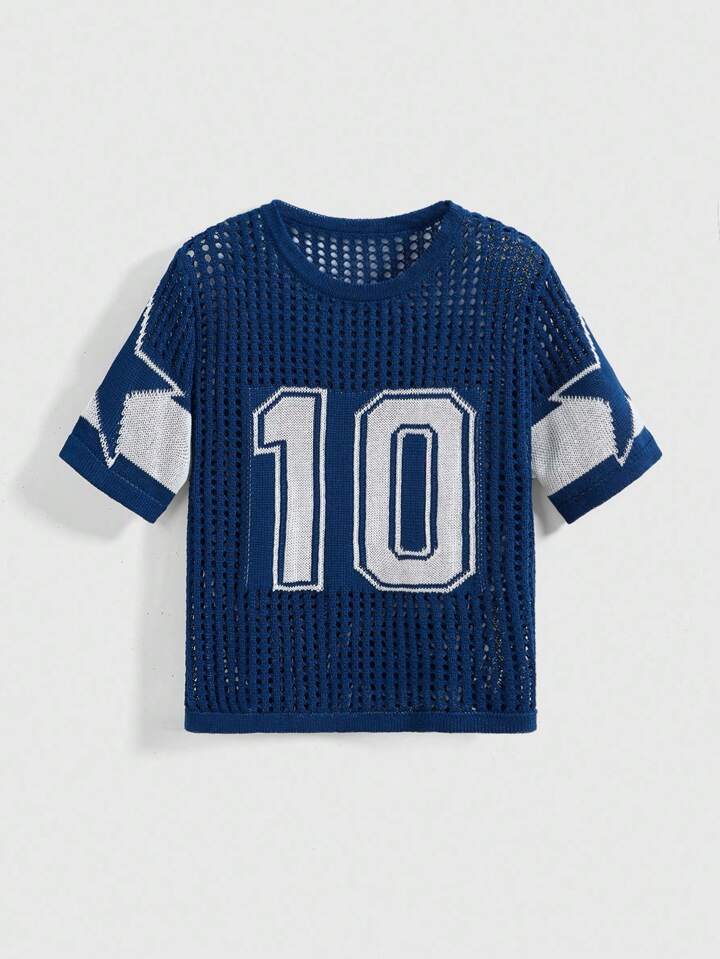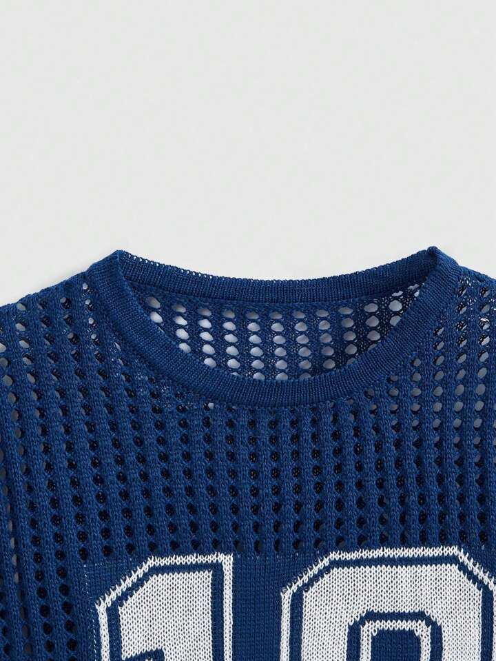 Street Life Loose Fit Hollow-Out Short Numeric Jersey Knit Sweater Knit Pullover Fall Winter