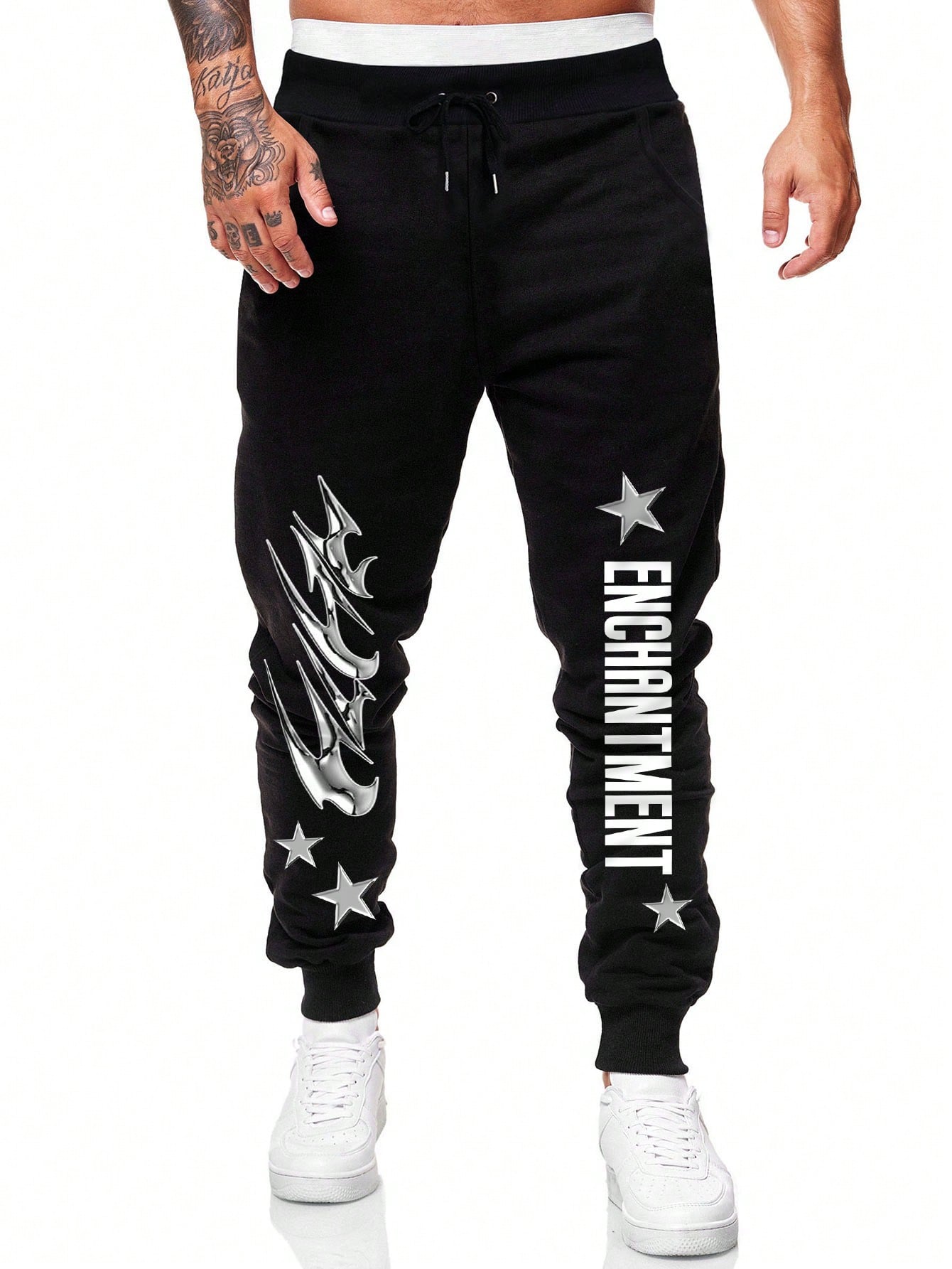 Street Life Men Black Printed Elastic Waist Drawstring Jogger Pants