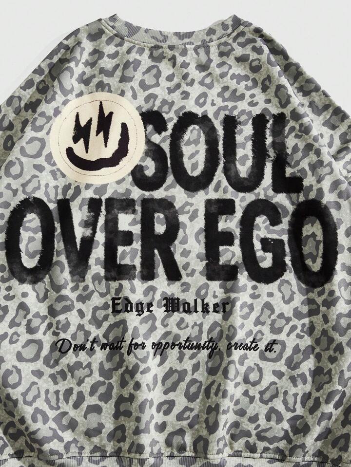 Street Life Men Casual Slogan Leopard Print Long Sleeve Crew Neck Pullover Sweatshirt For Autumn