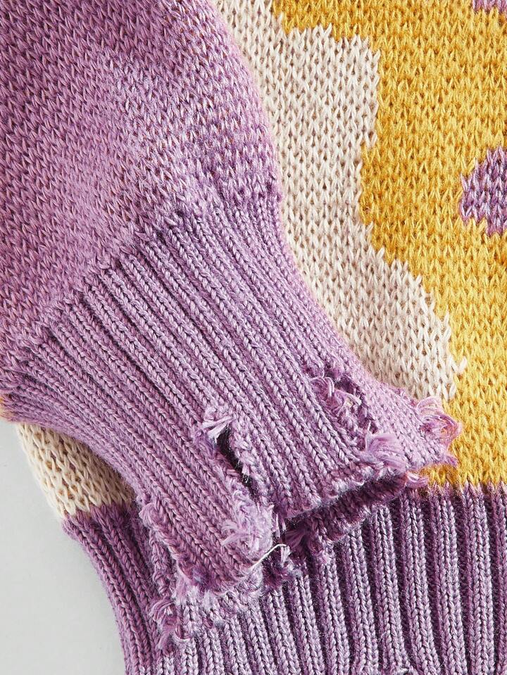 Street Life Men Cloud Pattern Distressed Hem Sweater