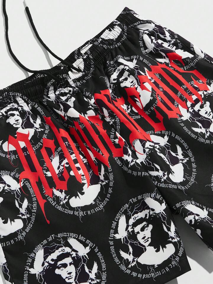 Street Life Men Figure & Letter Graphic Drawstring Waist Shorts
