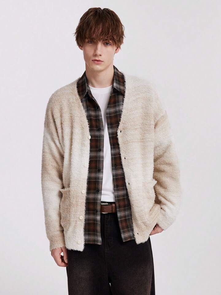 Street Life Men Grandpacore Solid Minimalist Casual Ombre Cardigan
