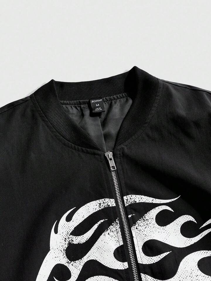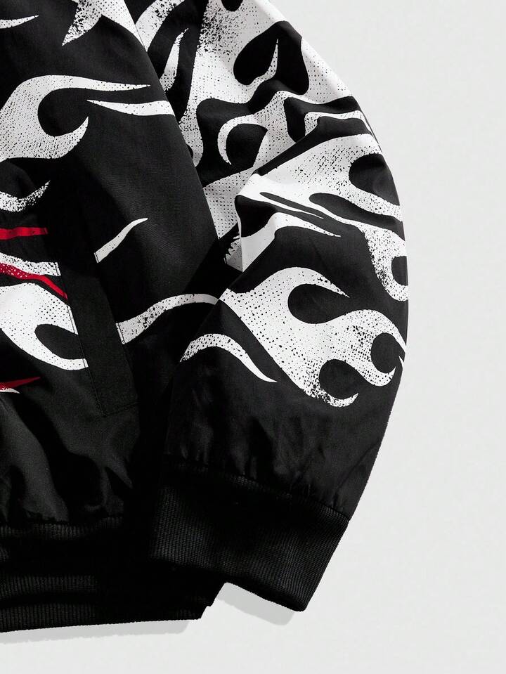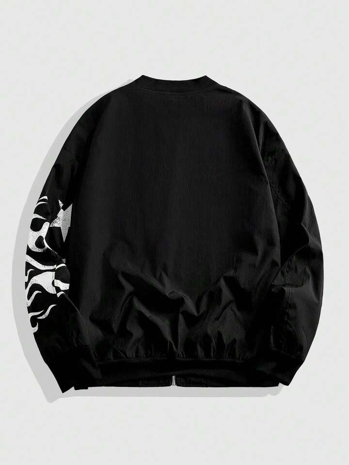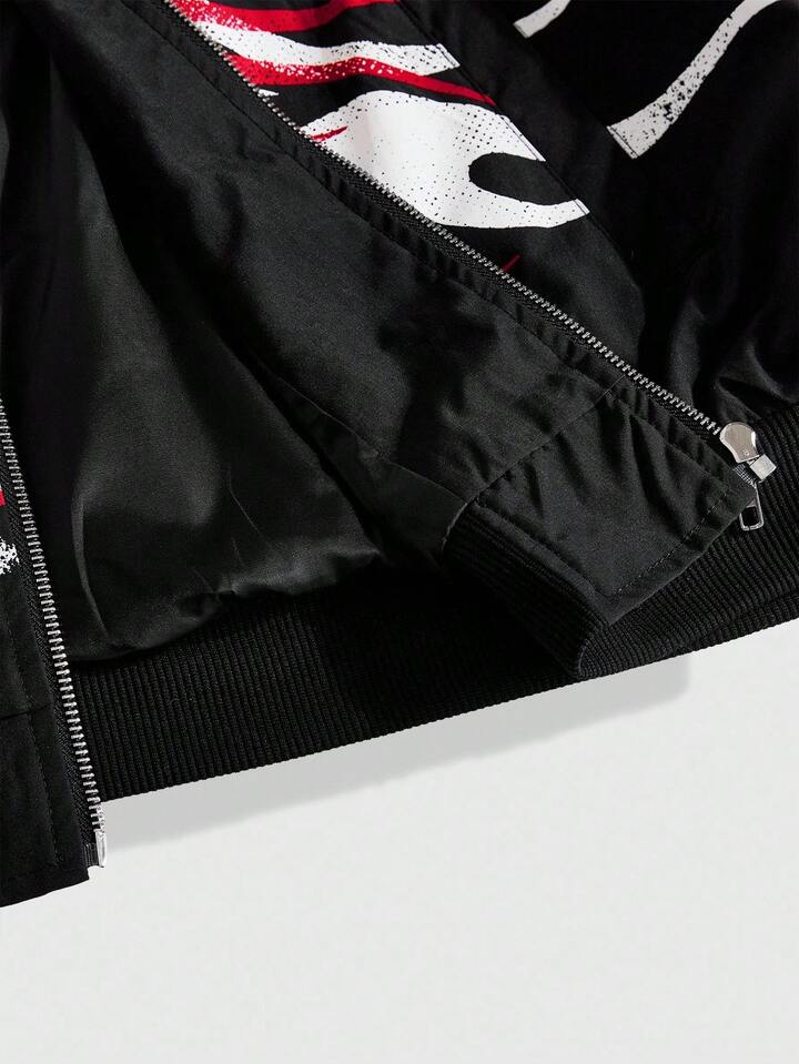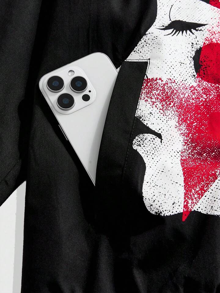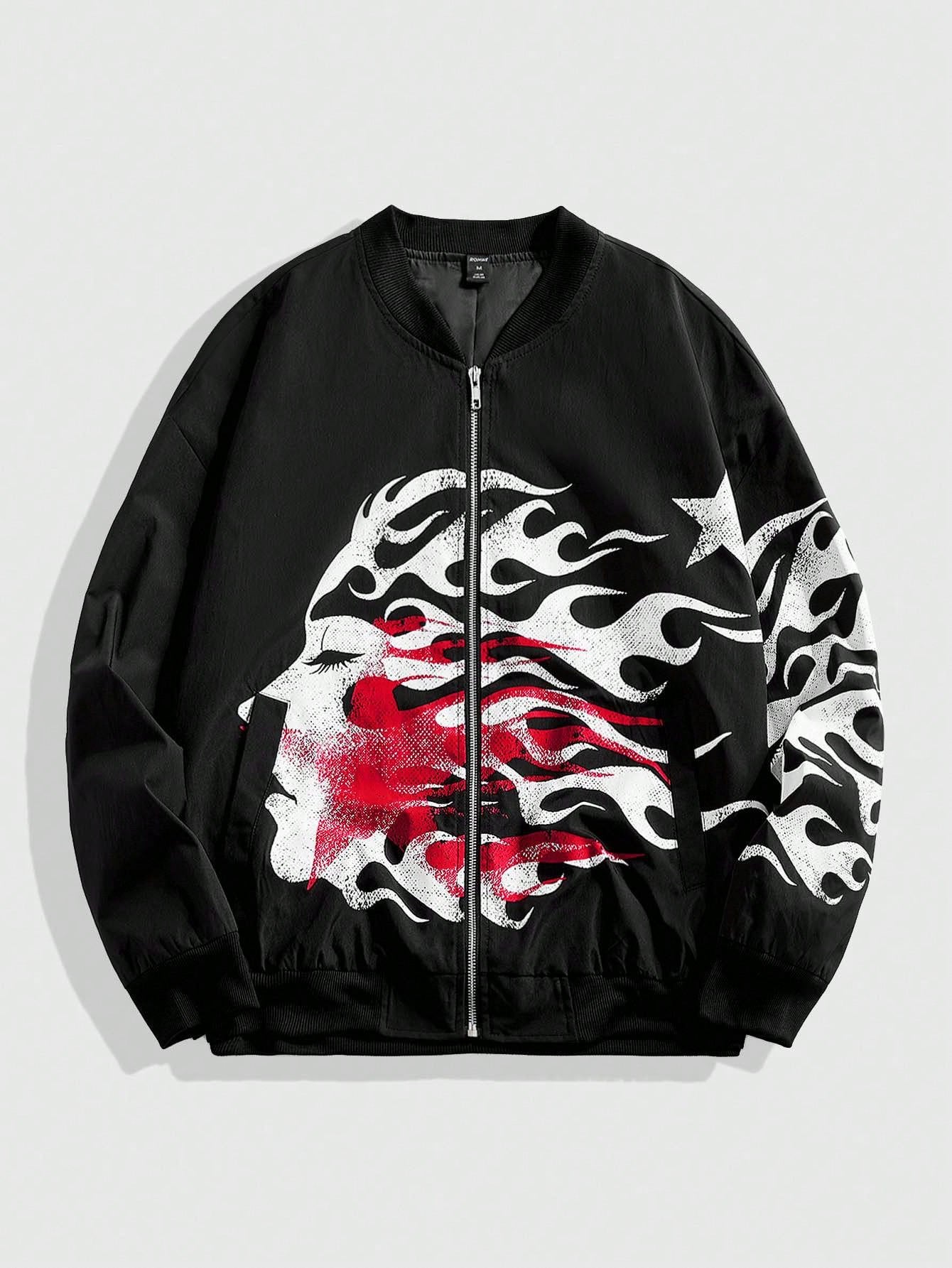 Street Life Men Portrait Punk Print Zip-Up Casual Long Sleeve Jacket, Fall