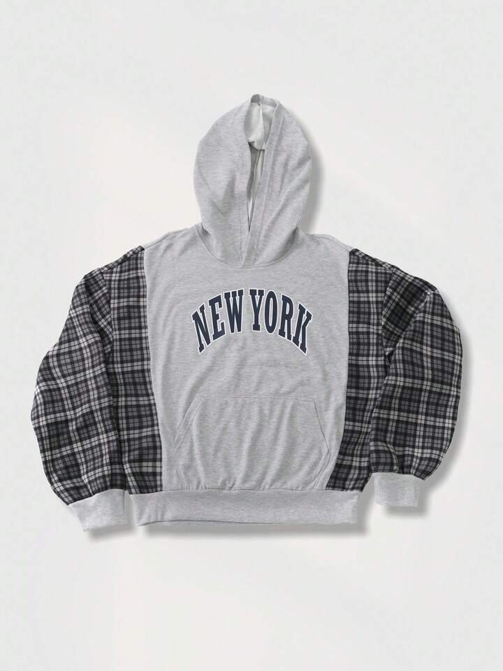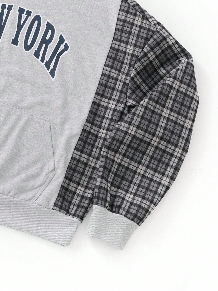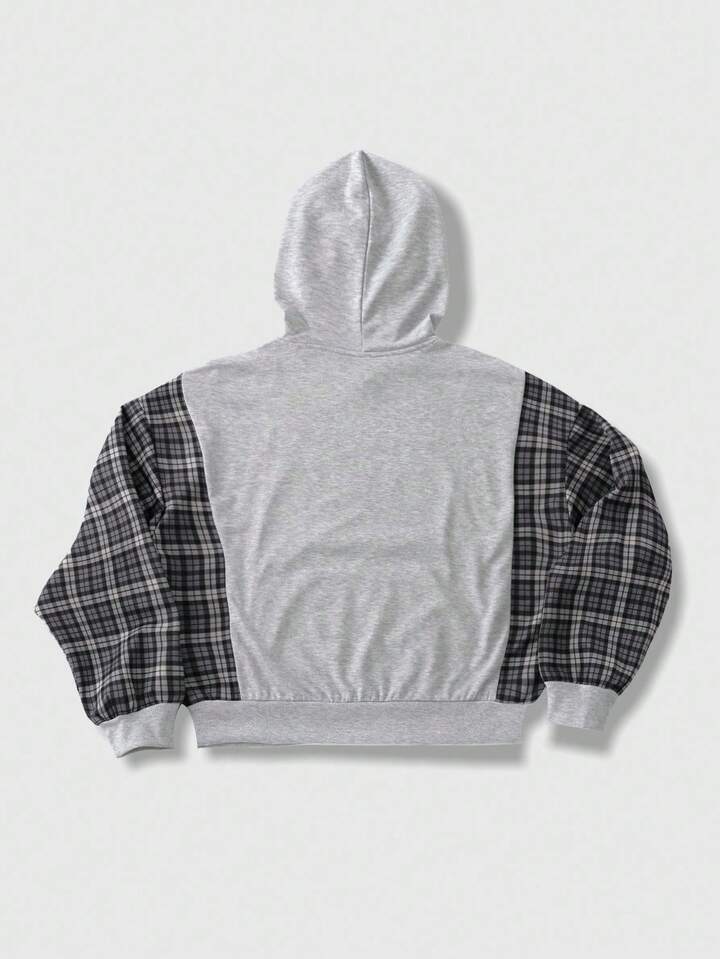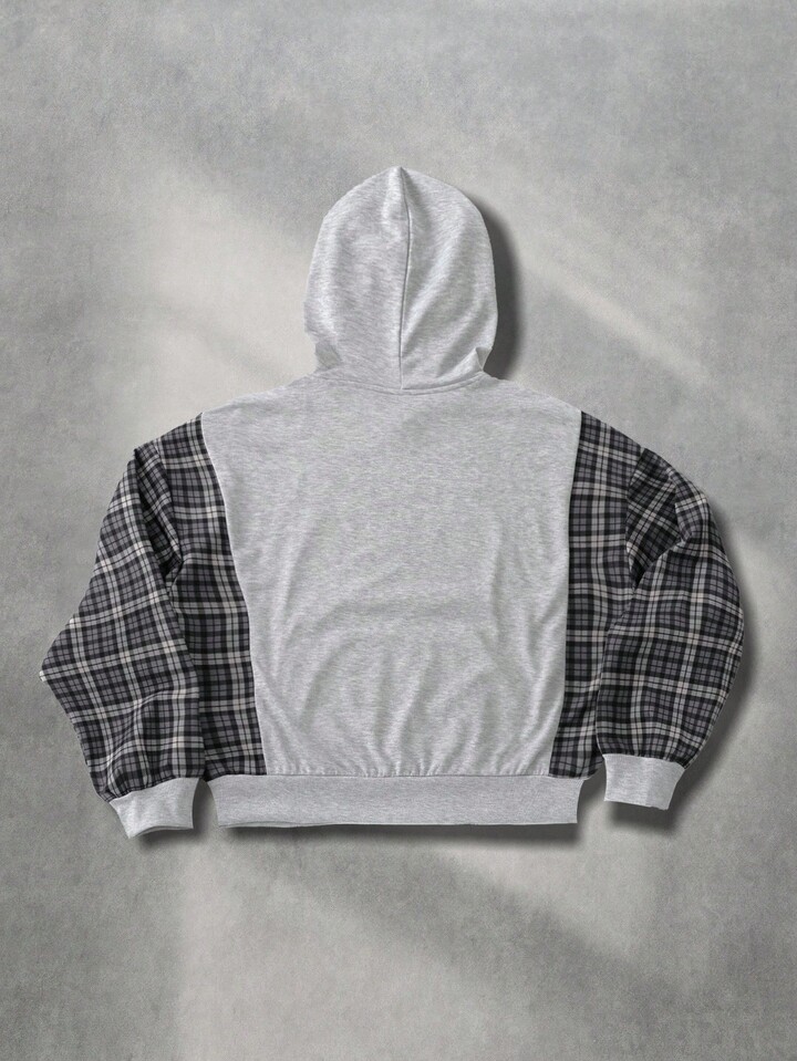 Street Life Men Retro American Plaid Patchwork Hoodie, Fall