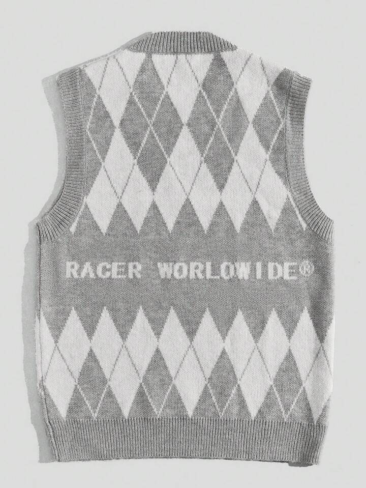 Street Life Men Round Neck Geometric Pattern Sweater Vest