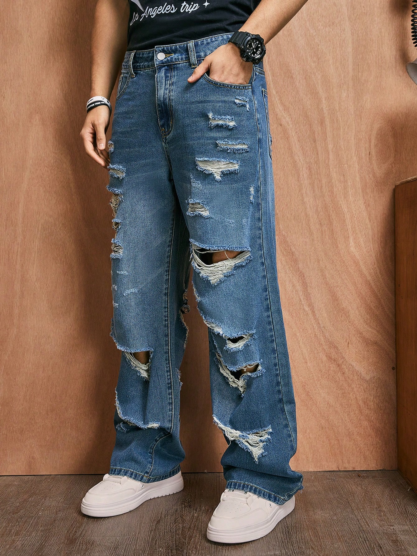 Street Life Men'S Jeans With Slanted Pocket And Distressed Detailing