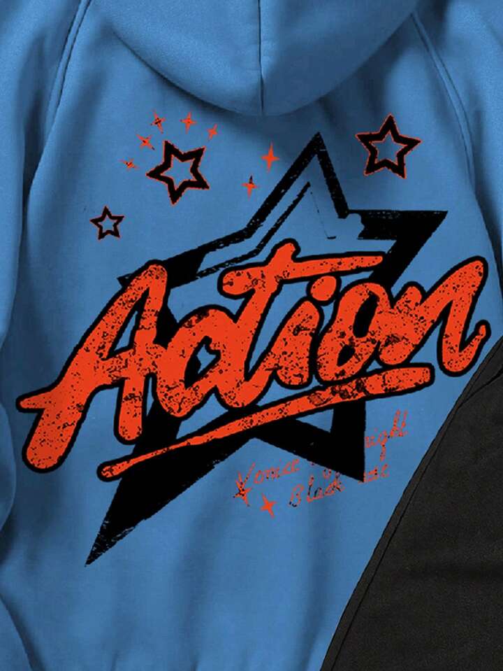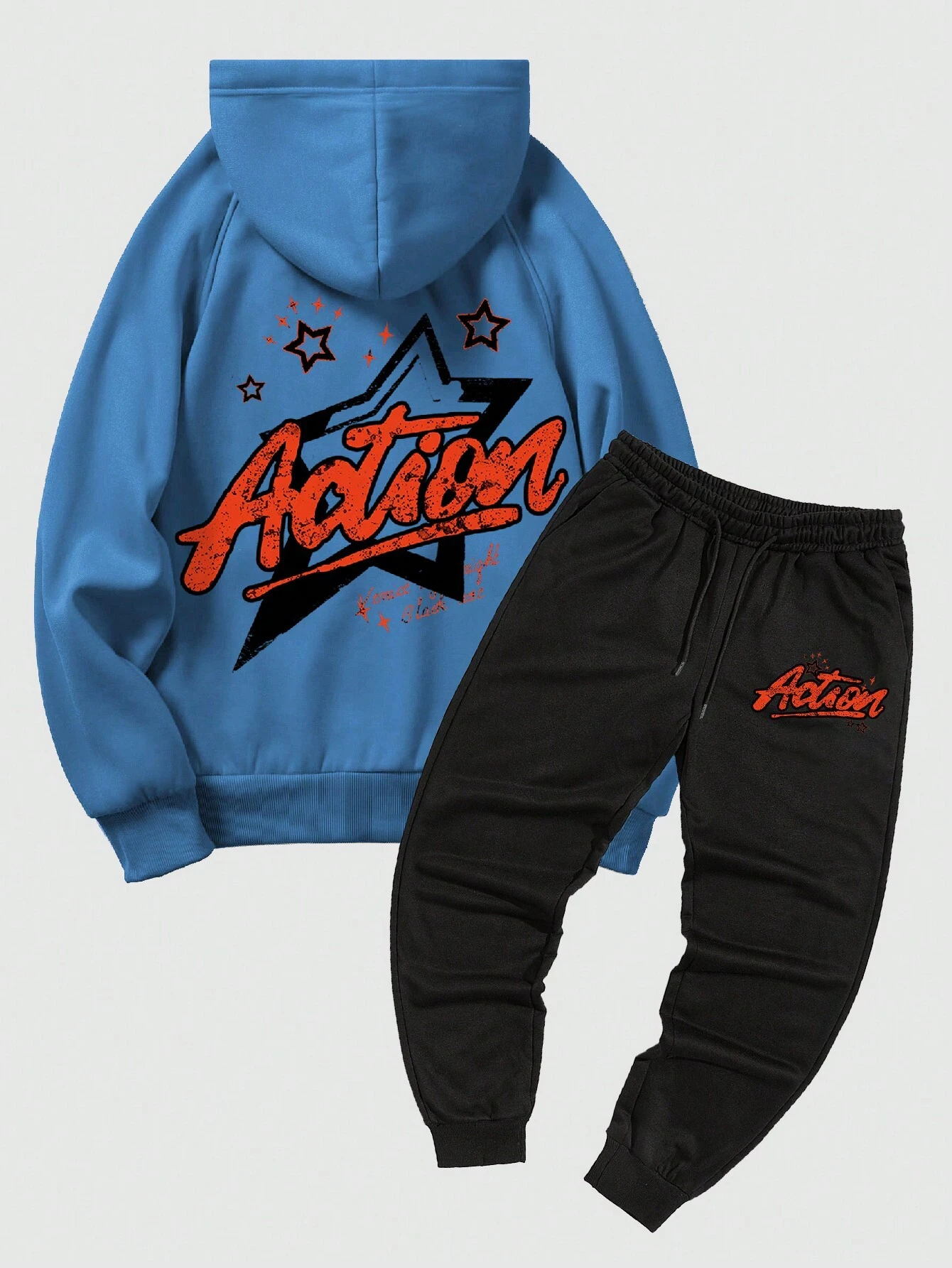Street Life Men Simple Printed Hooded Sweatshirt And Sweatpants Two-Piece Set