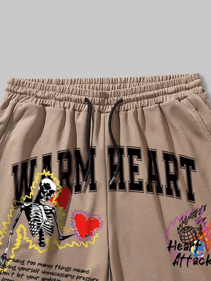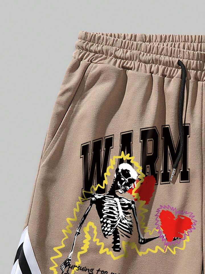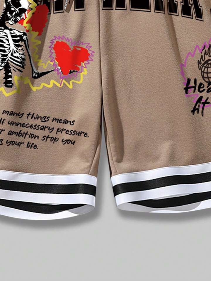 Street Life Men Slogan Graphic Contrast Trim Drawstring Waist Shorts