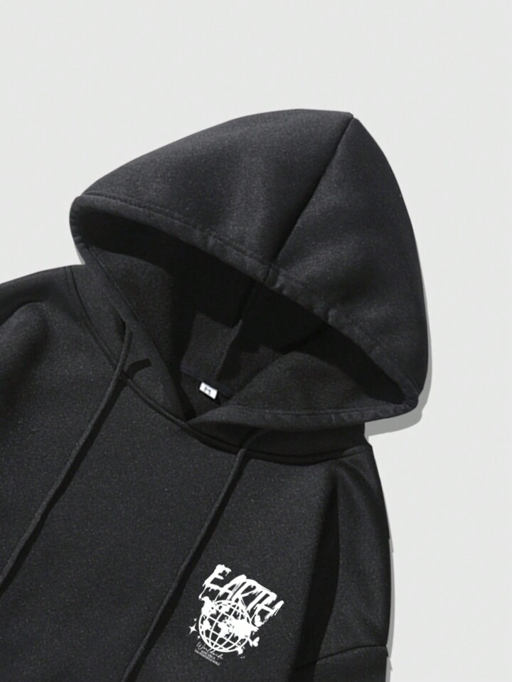 Street Life Men Slogan Graphic Drawstring Thermal Hoodie