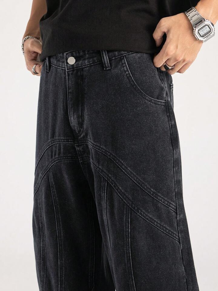 Street Life Men Splicing Baggy Jeans Long Baggy Pants, Suitable For Four Seasons Daily Wear