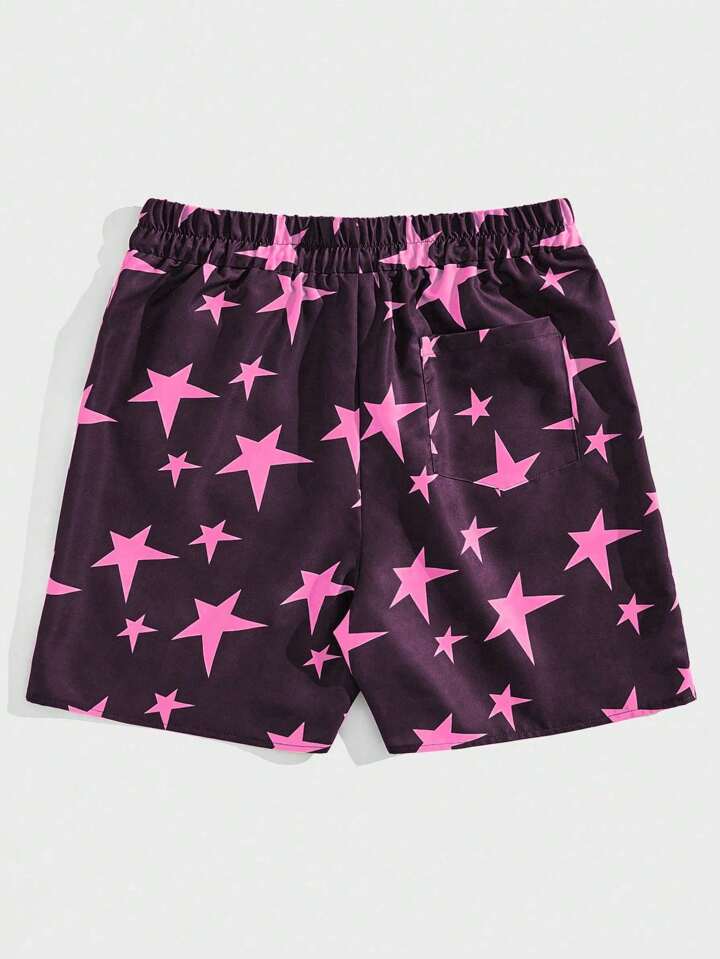 Street Life Men Star & Letter Graphic Drawstring Waist Shorts