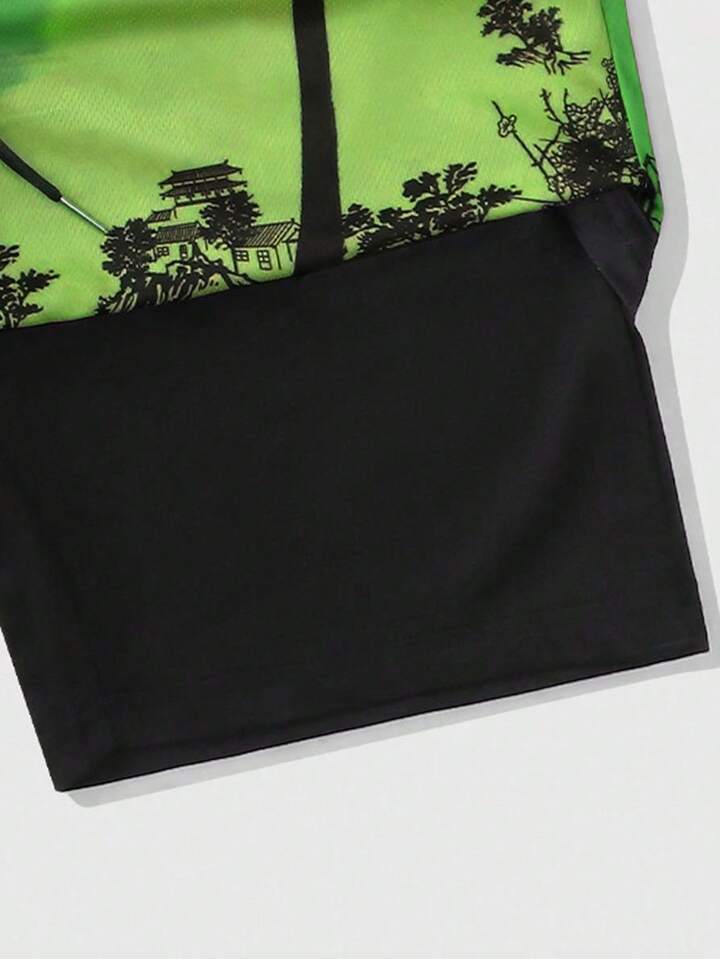 Street Life Men's 2 In 1 Palm Tree Print Casual Shorts, Suitable For Daily Wear, Spring/Summer