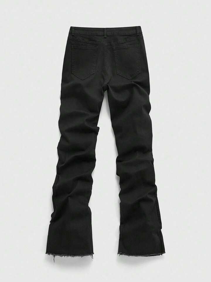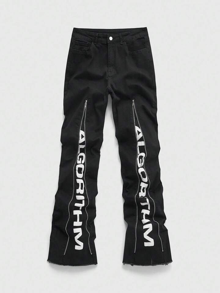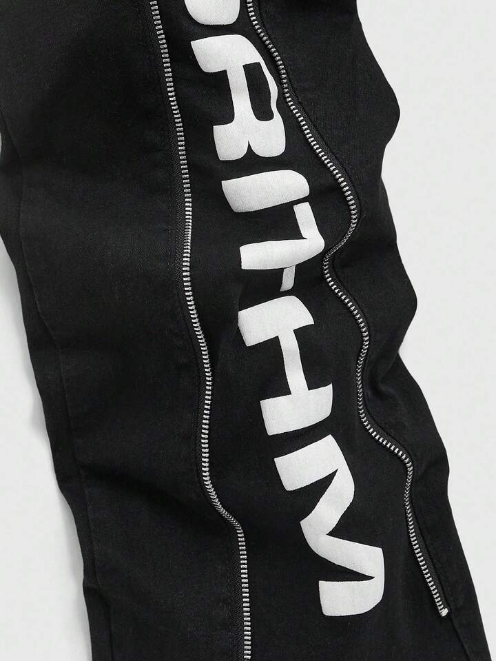 Street Life Men's Adjustable Zipper Layered Flare Jeans With Printed Design