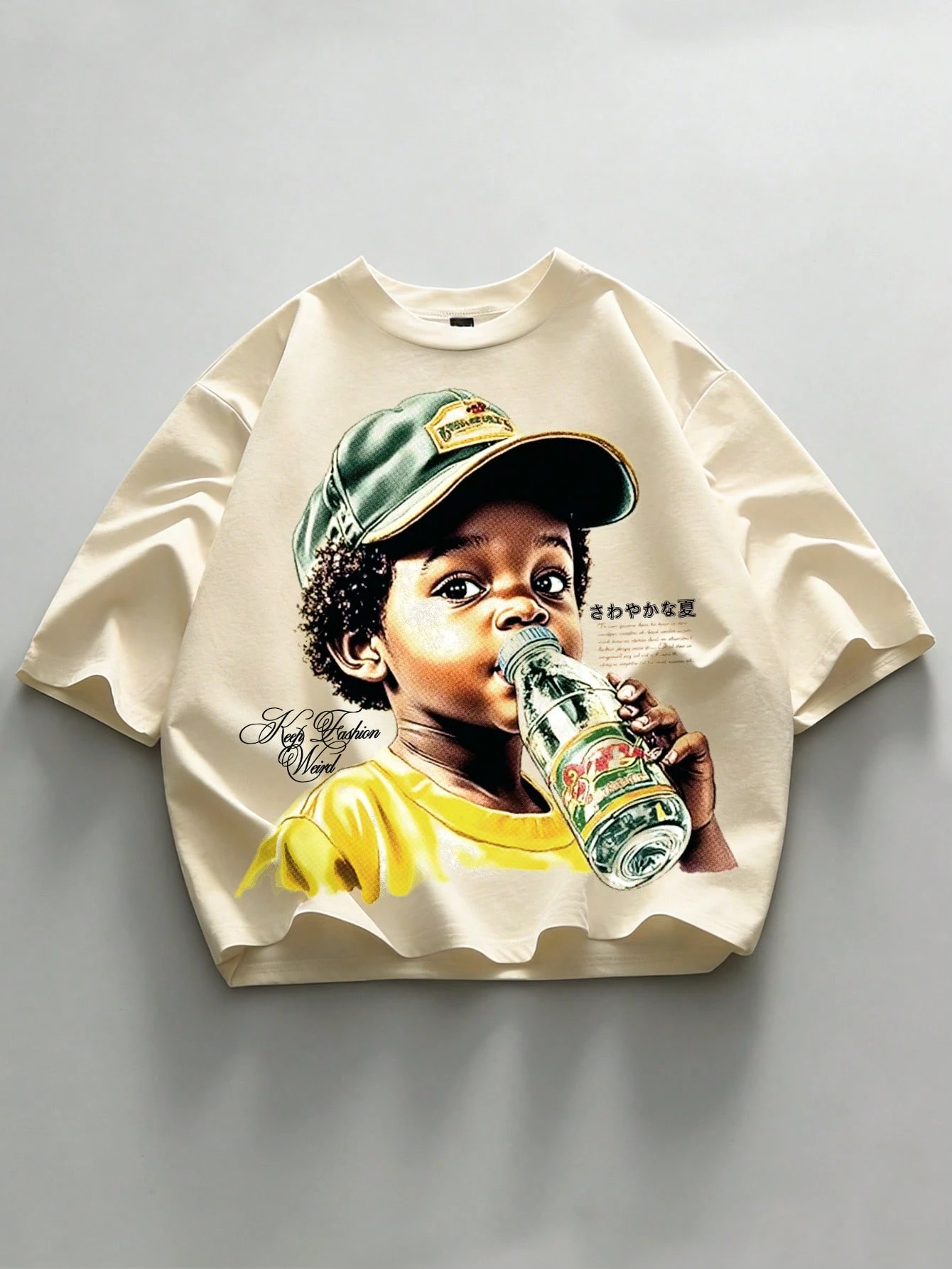 Street Life Men's Angel Print Short Sleeve T-Shirt, Suitable For Spring And Summer
