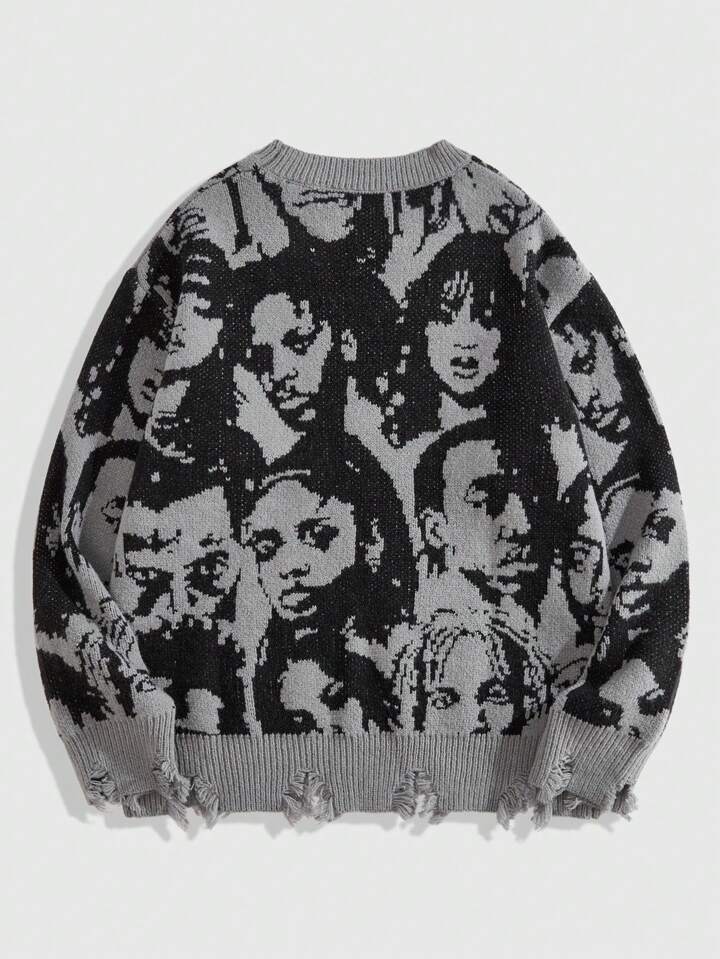 Street Life Men's Autumn/Winter Letter & Figure Jacquard Knit Sweater, Street Style