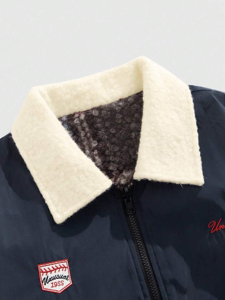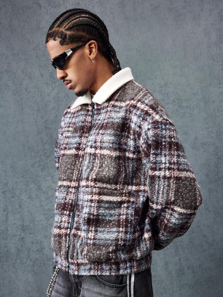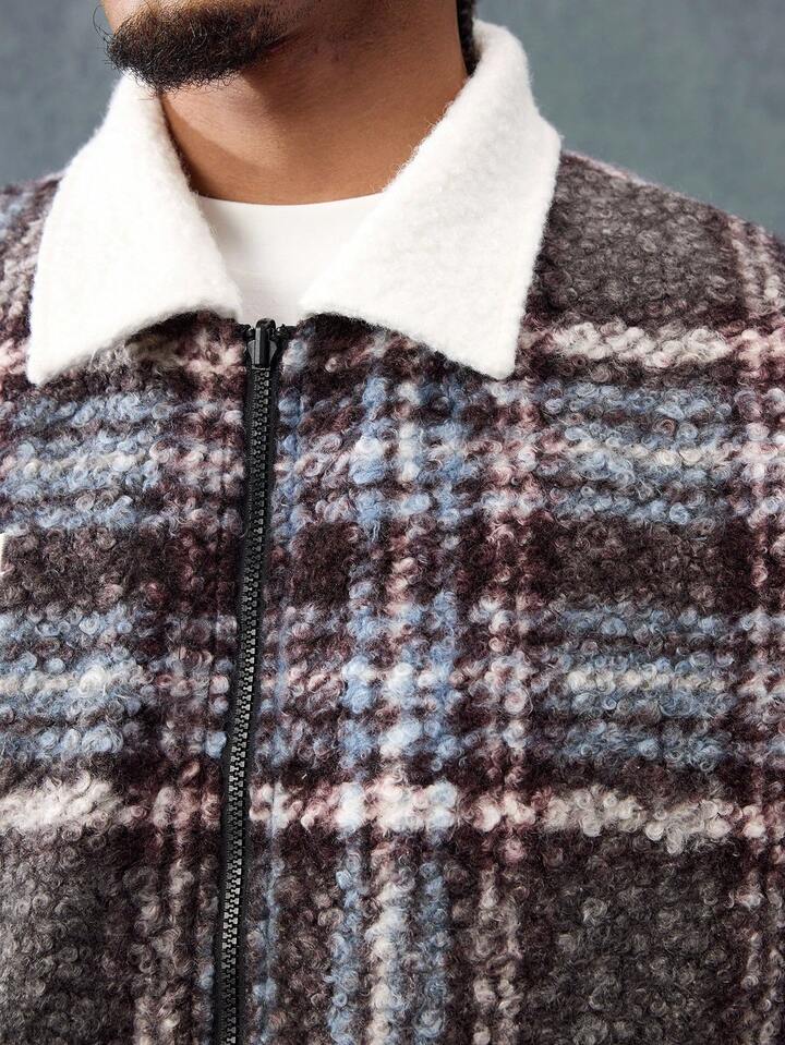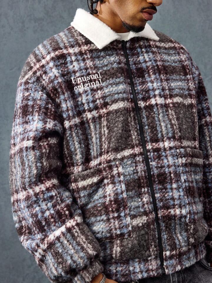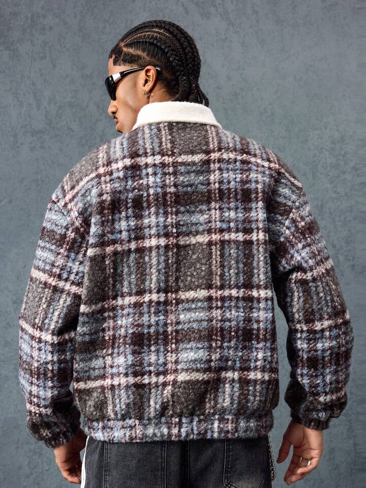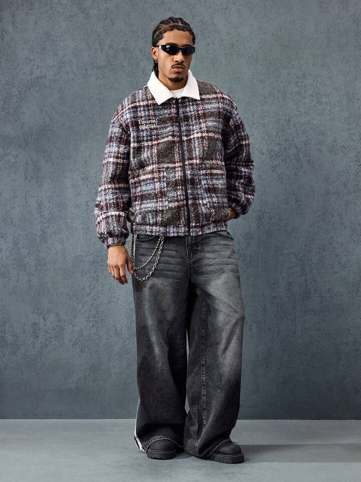 Street Life Men's Autumn/Winter Letter Plaid Printed Reversible Zip-Up Casual Jacket