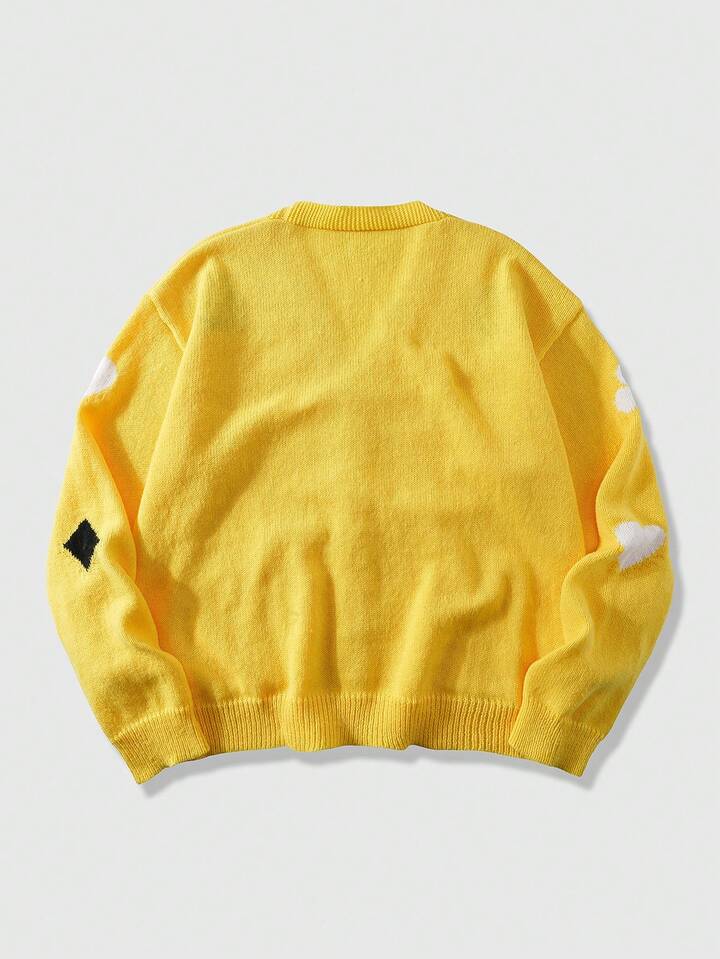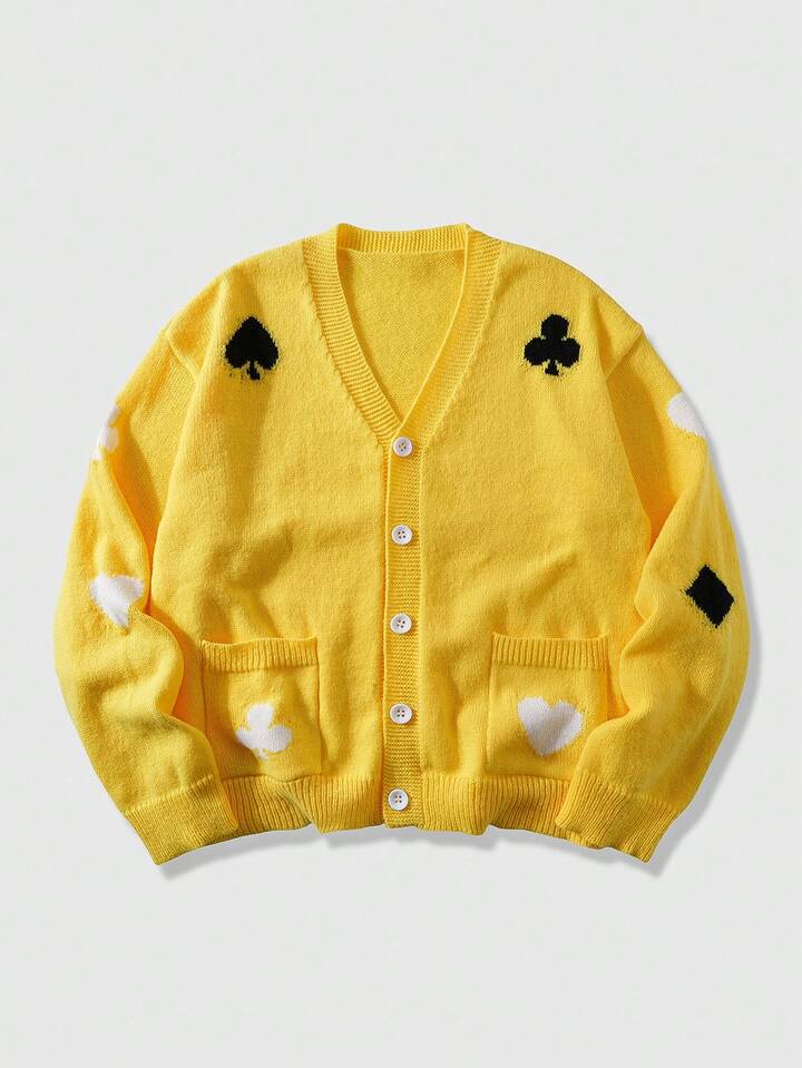Street Life Men's Autumn/Winter Poker Pattern Knitted Single-Breasted Cardigan