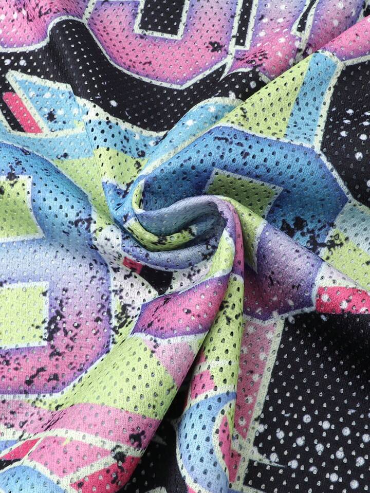 Street Life Men's Basketball Jersey T-Shirt, Sports Mesh Fabric Blocking, Street Style