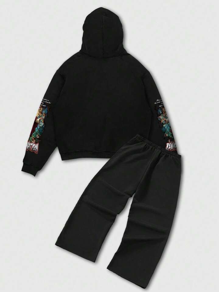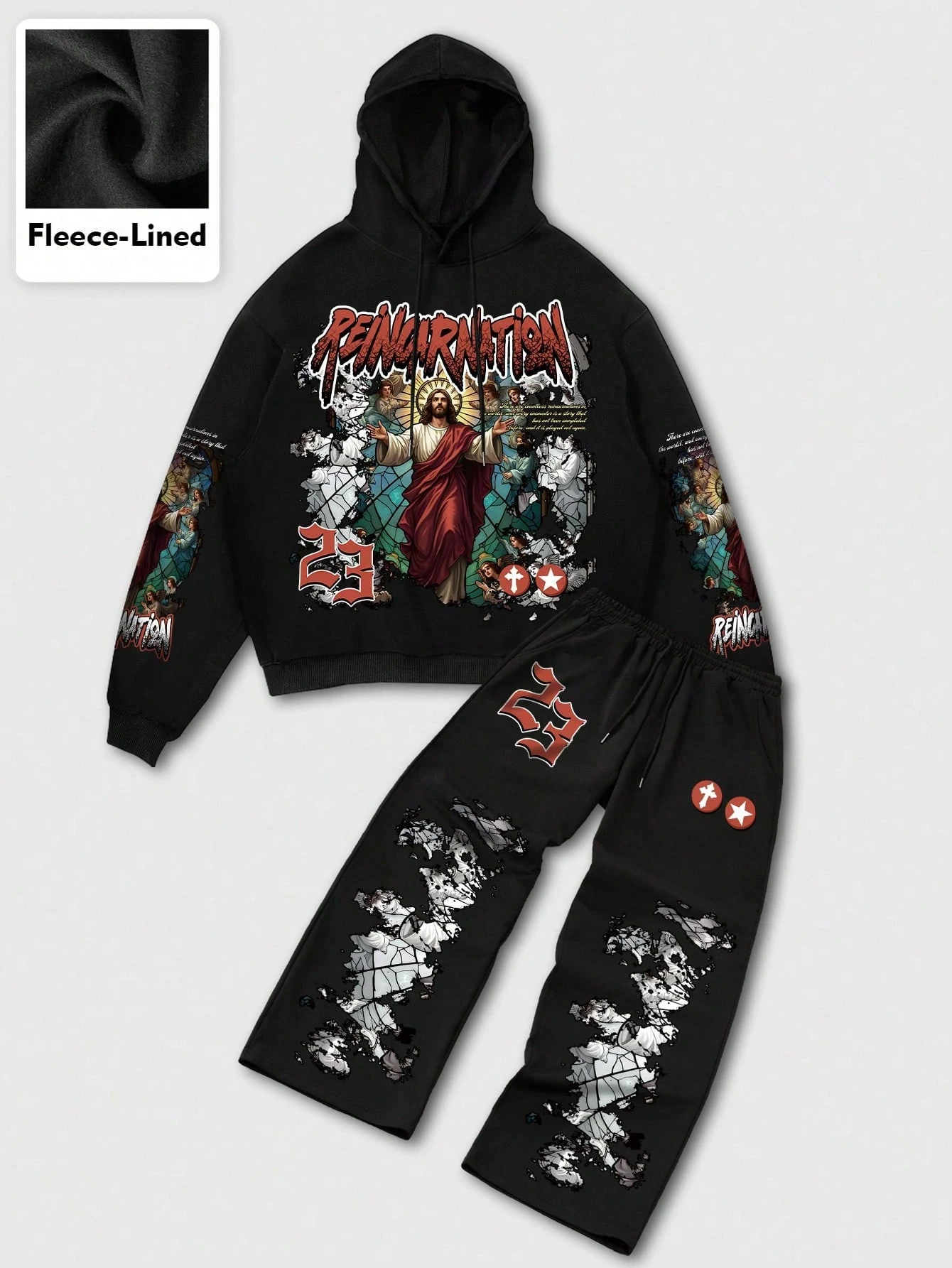Street Life Men's Black Jesus Print Hoodie Set, Autumn/Winter