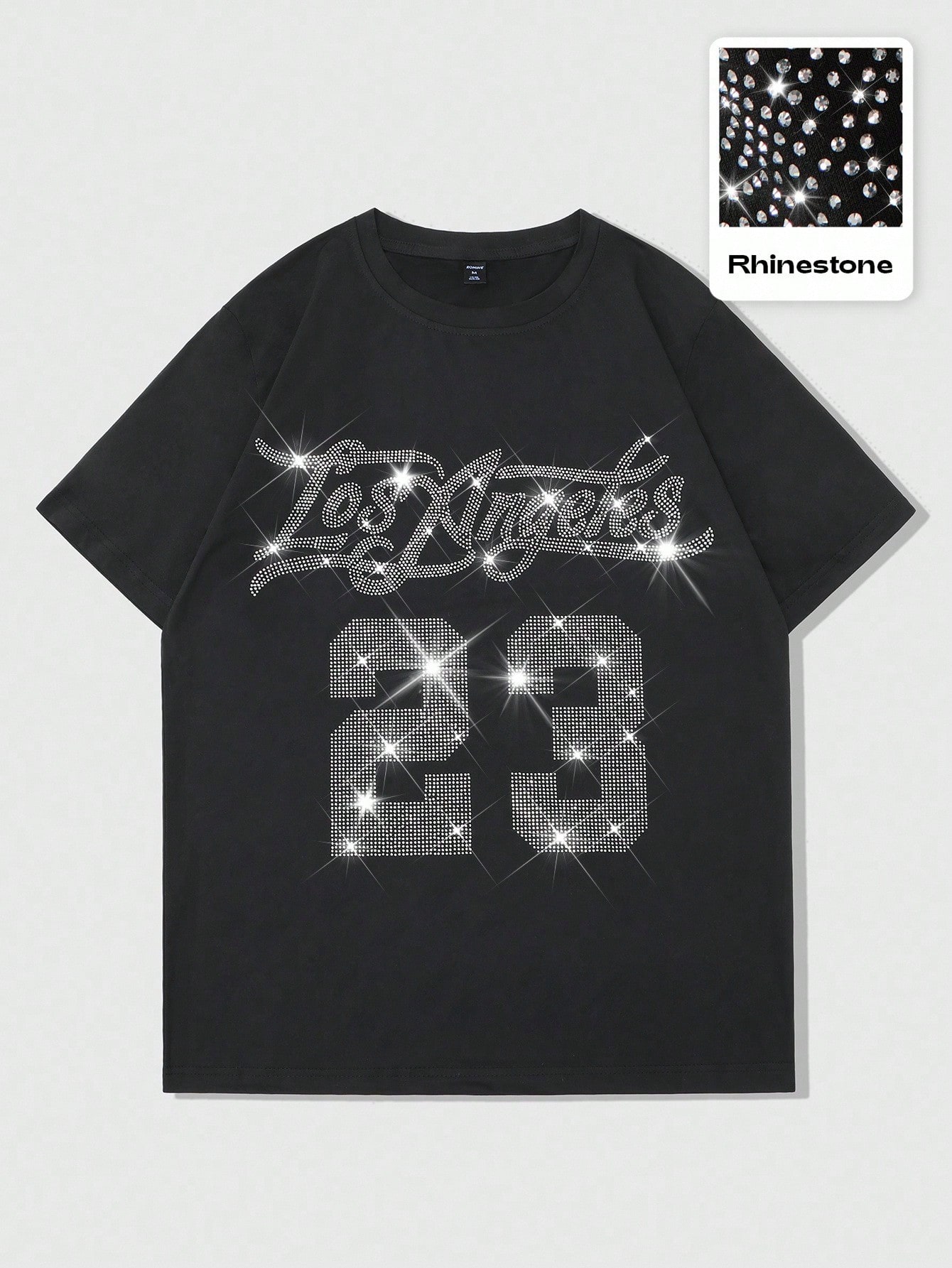 Street Life Men's Black Letter English Rhinestone Graphic Casual T-Shirt