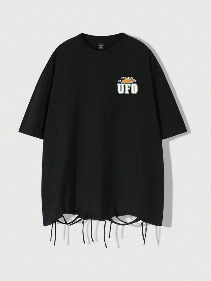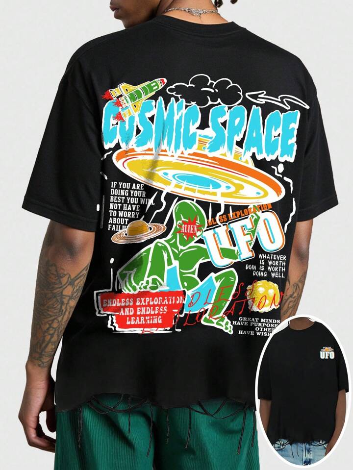 Street Life Men's Black Ripped & Graffiti Printed Casual T-Shirt