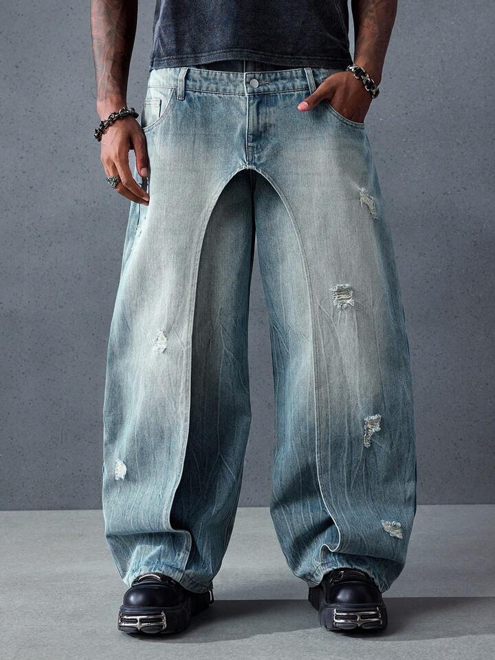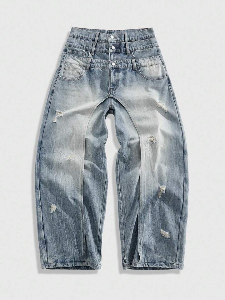 Street Life Men's Blue Fashion Distressed Loose Fit Multi-Waistband Jeans