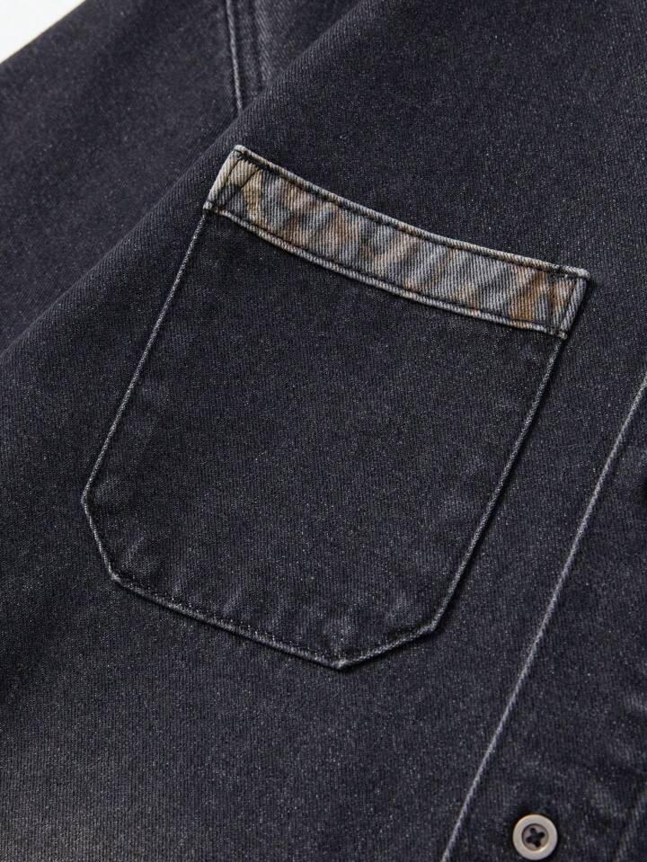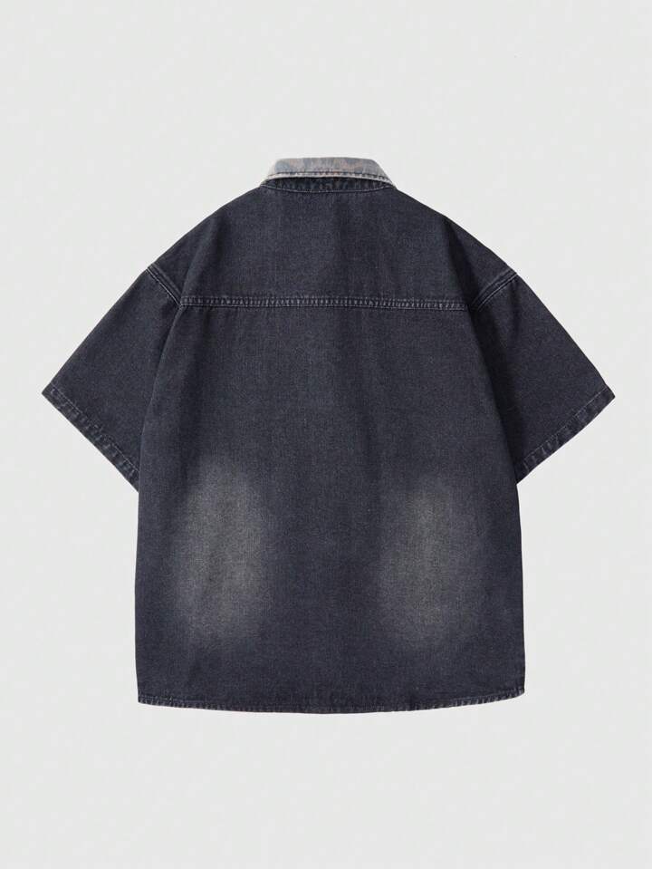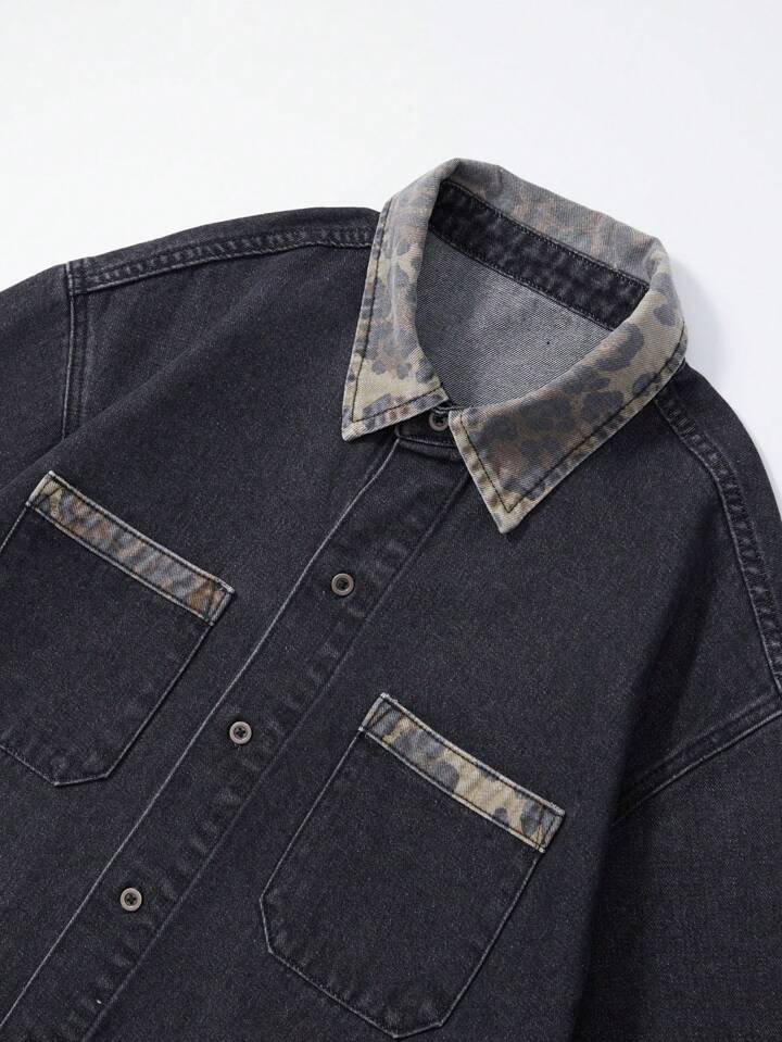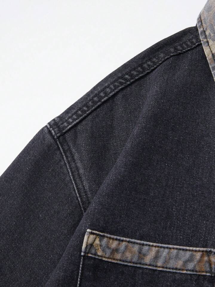 Street Life Men's Camo Casual Denim Shirt, Minimalist Style Suitable For Summer