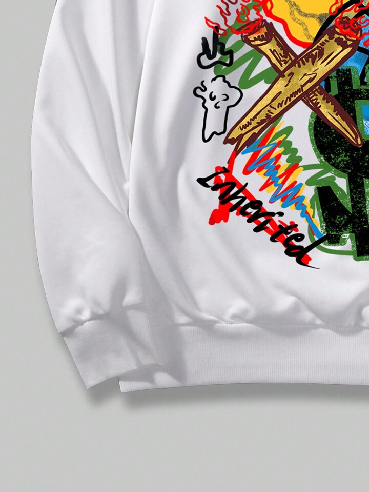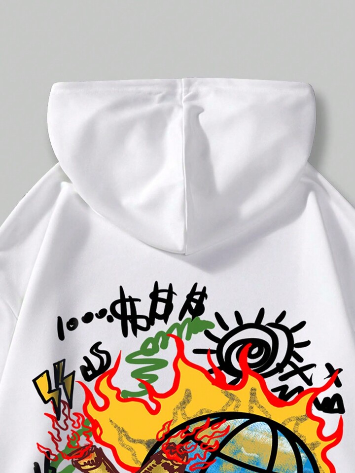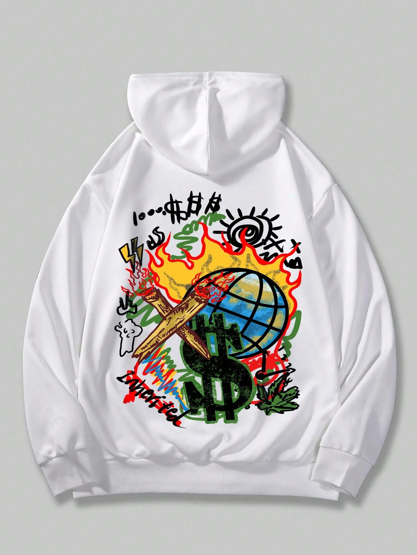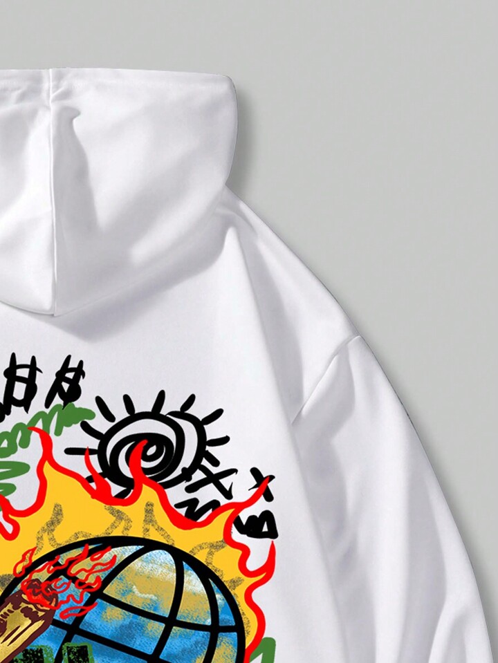 Street Life Men's Cartoon Pattern Drawstring Hoodie Sweatshirt
