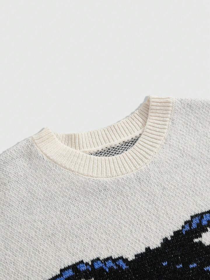 Street Life Men's Casual Cartoon Jacquard Crew Neck Pullover Sweater, Autumn/Winter