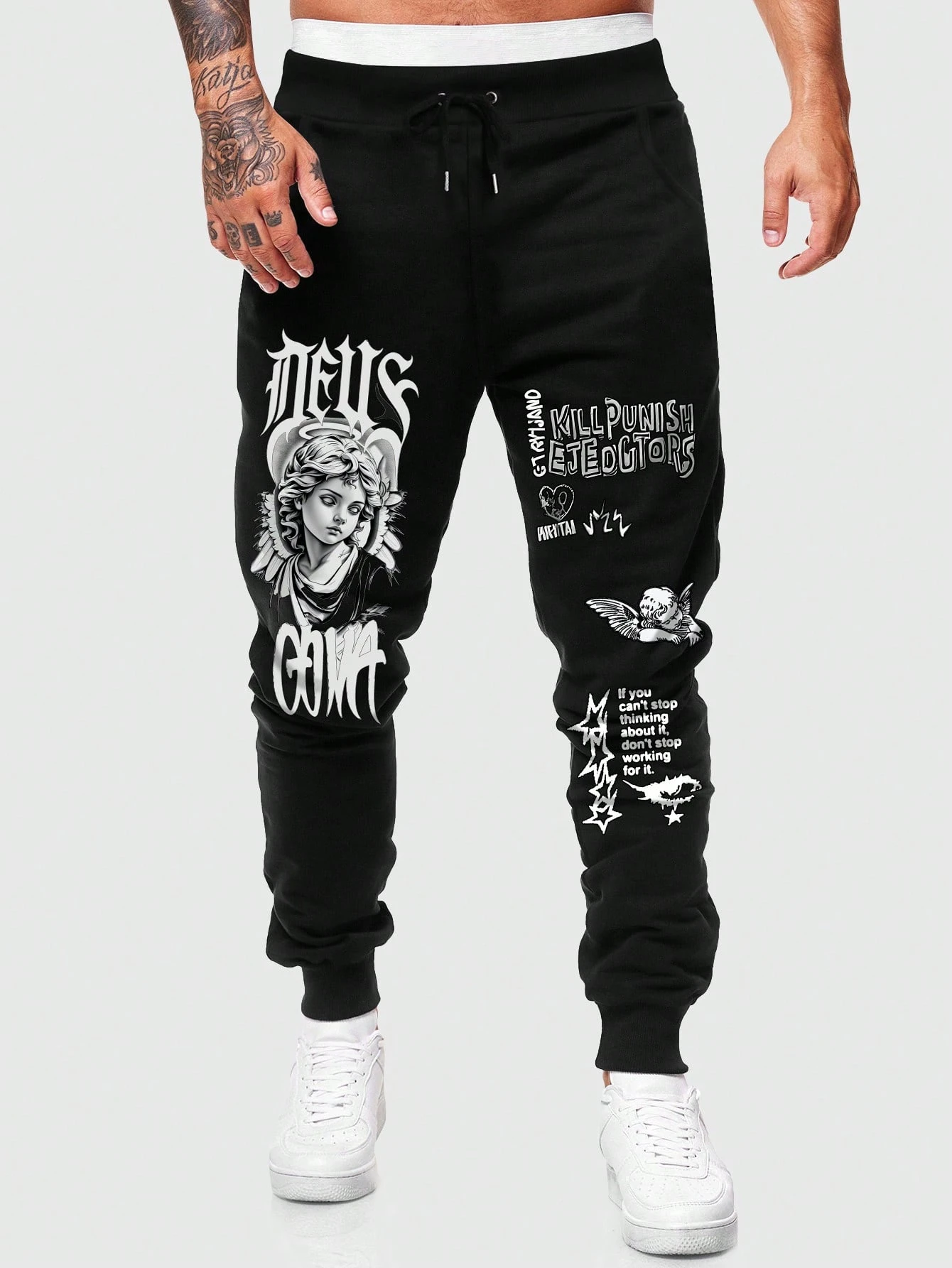 Street Life Men's Casual Fashion Street Angel Slogan Print Drawstring Waist Jogger Pants