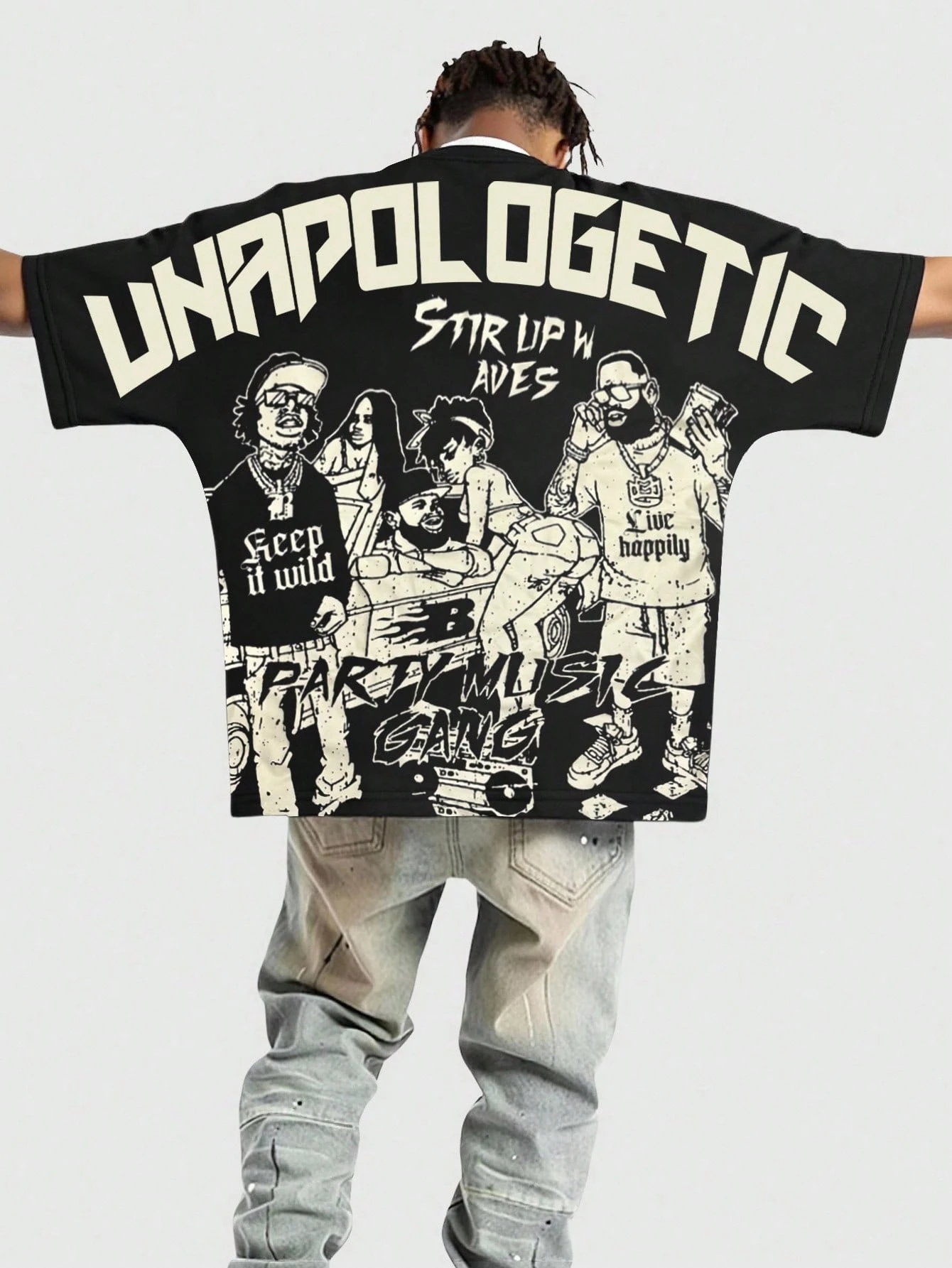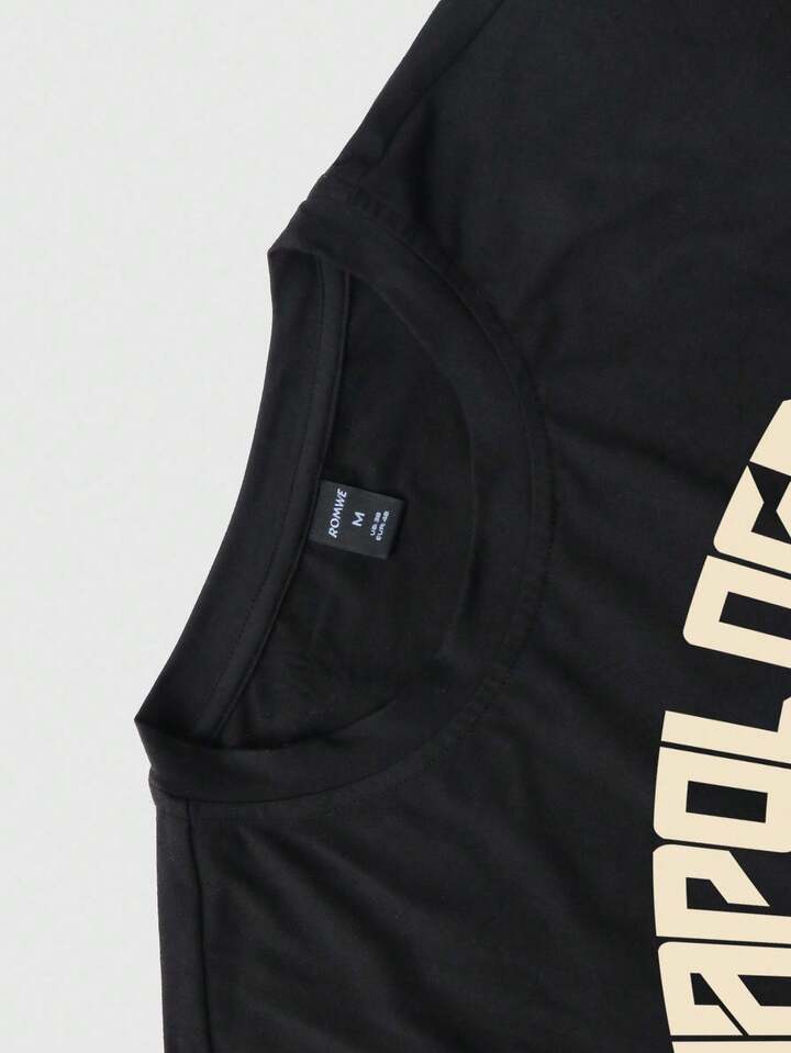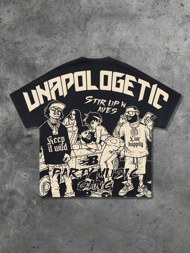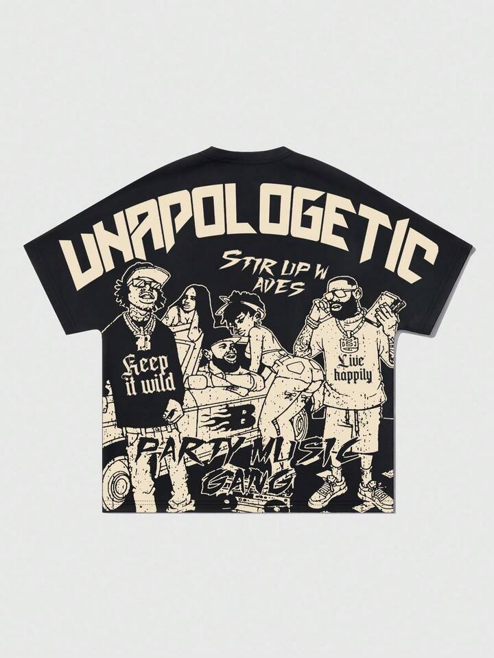 Street Life Men's Casual Fashion Street Cartoon Character & Letter Print Short Sleeve T-Shirt, Summer
