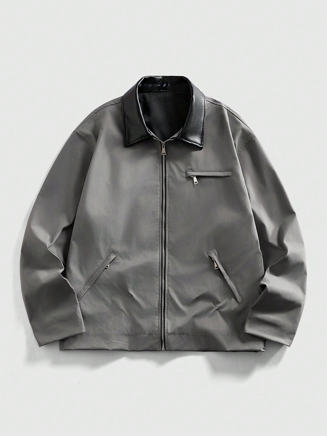 Street Life Men's Casual Fashion Street Daily Commute Patchwork Fabric Zip-Up Jacket, Autumn