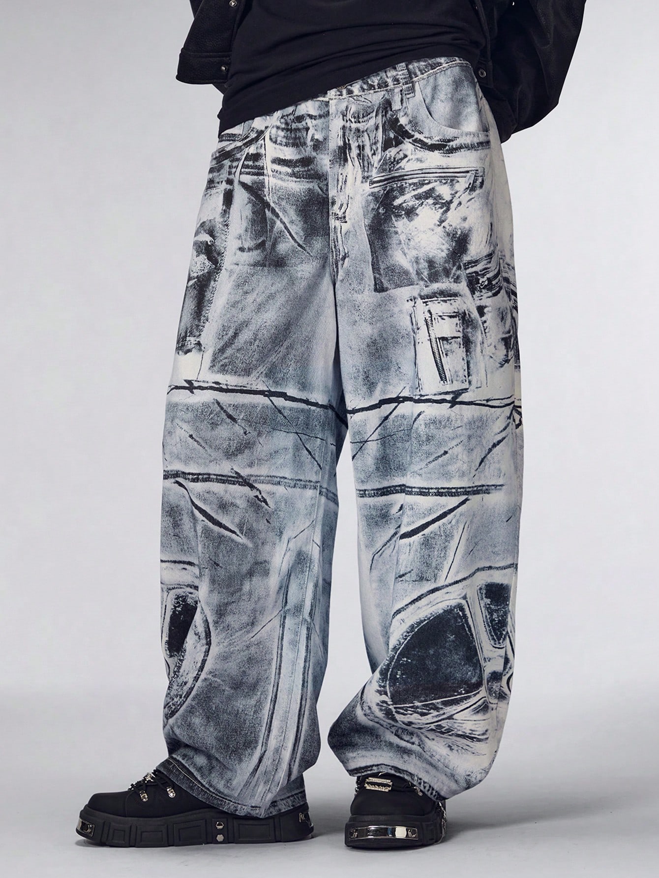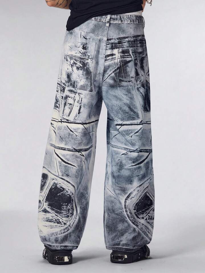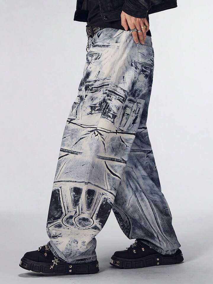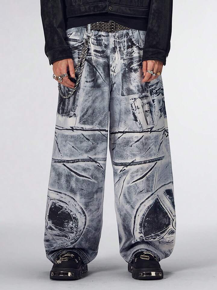 Street Life Men's Casual Fashion Street Graphic Print Loose Wide-Leg Jeans
